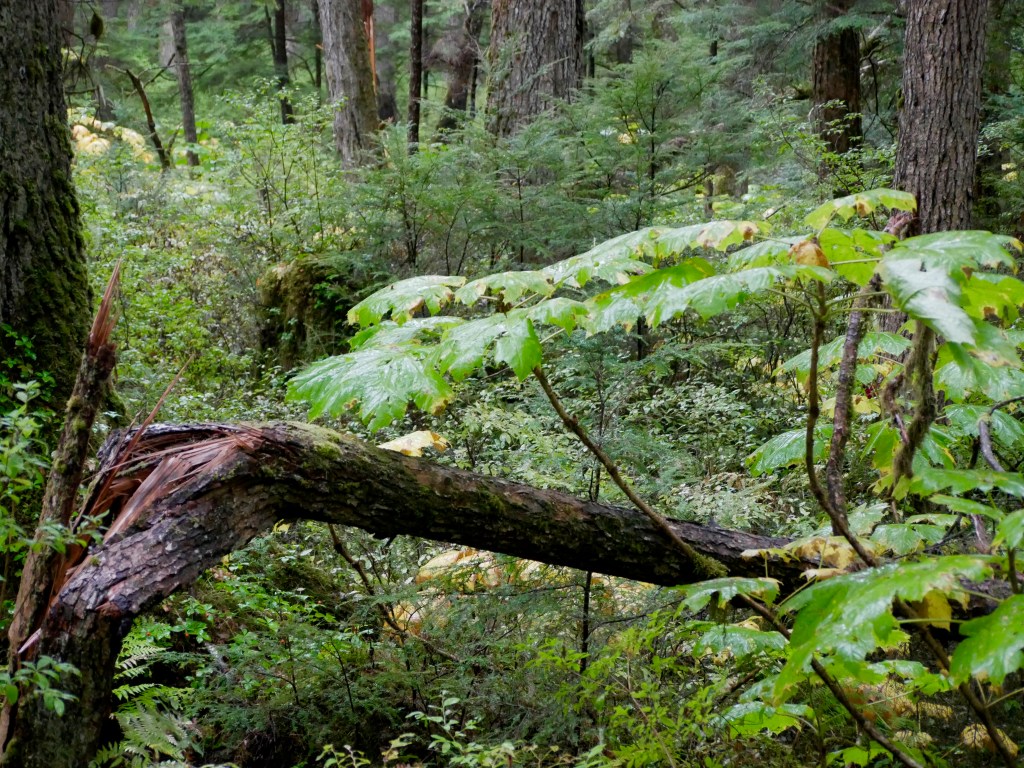 I choose the Rainforest Trail this morning for the storm protection it offers. But we must be out of the forest before the wind becomes strong enough to snap the trailside hemlock trees. The forecast only called for forty-knot gusts, which shouldn’t have to power to down old growth trees. But the grey morning light has made me a little paranoid. Sometimes weather forecasts are proven wrong.