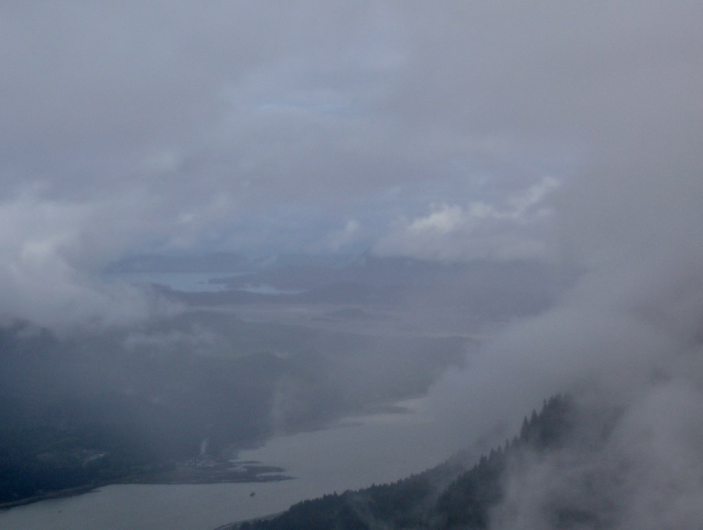 A friend and I are above the timberline on Mt. Roberts. We took the tram up from salt water and then climbed up through a thin line of timber before reaching the alpine. On a clear day we could see up and down Gastineau Channel and across the Douglas Island ridge to Admiralty Island. This afternoon, obscuring mist opens and closes off views from the mountain. Any disappointment from the lack of views is made up by this chance for a close up observation of a baby porcupine.