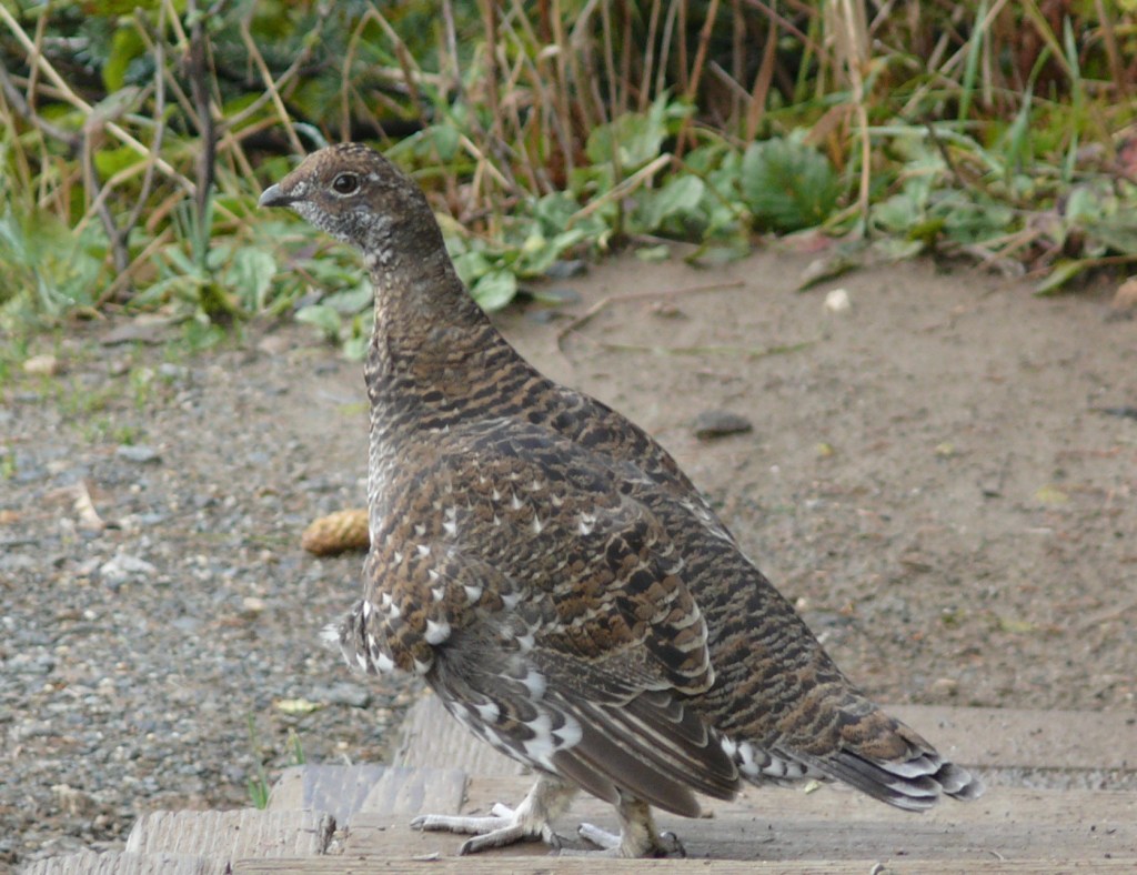 It hangs from a tangle of alder branches like a jungle sloth, nibbling on tender shoots. A cruise ship tourist joins us and expresses intent to stroke the porky’s spiny back. We move on before the disaster happens and in minutes stumble on a willow ptarmigan in its chestnut summer plumage. It freezes in place until startled to flight by two tourists who never knew the bird was there.