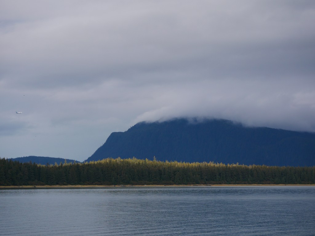 In a nearby spruce tree, a bald eagle screeches out a warning. It gives us a stern look that reminds me of the one saved by policemen for vagrants weighed down with burglary tools. When two other eagles return the screech, I take my hands from my pockets and affect an interest in something on the opposite side of the cove. A beam of sun has just powered through the cloud cover to light up the tips of spruce on an island, frosting the fall green trees with a thin layer of summer.