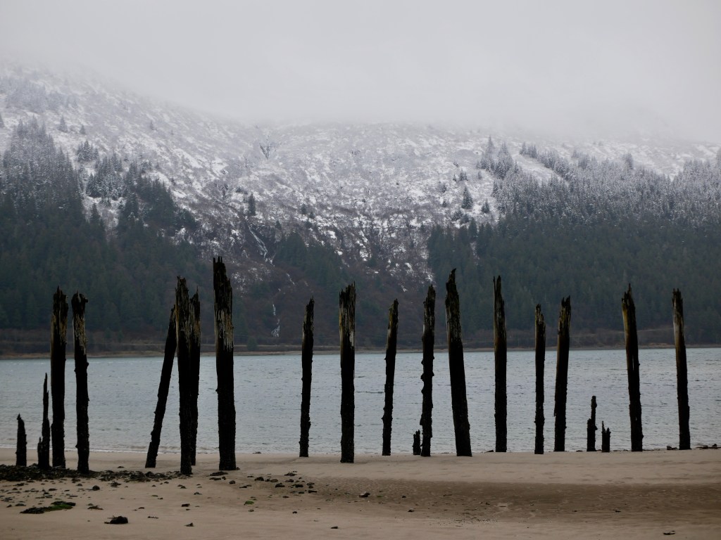 Next time, I promise myself, I will walk through the Treadwell Woods to Glory Hole Bay and then home with the wind at my back. I wipe rain from my glasses so I can see down Gastineau Channel. Just past Glory Hole Bay, two bald eagles ride upward in the wind. Flexing their wings, the eagles then drop like stones. One dives on something in the channel. The other eagle turns its wings into a parachute and drifts onto the top of an old wharf piling. They are masters of their six-foot wings.