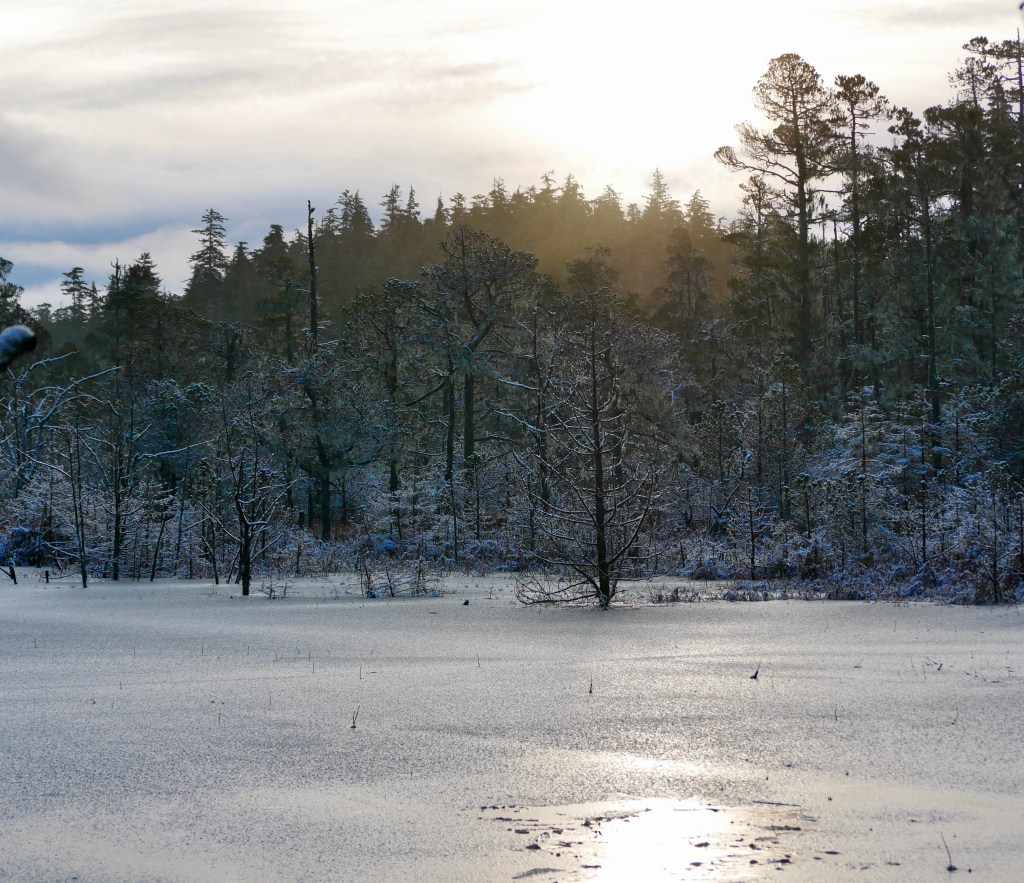 It seems more like spring than winter this morning.  A little sunshine can do that even when the temperature hovers above freezing. Snow still covers the trailhead parking lot but inside the forest, the trail is bare. So are my hands. I don’t bother to pull on my mittens.