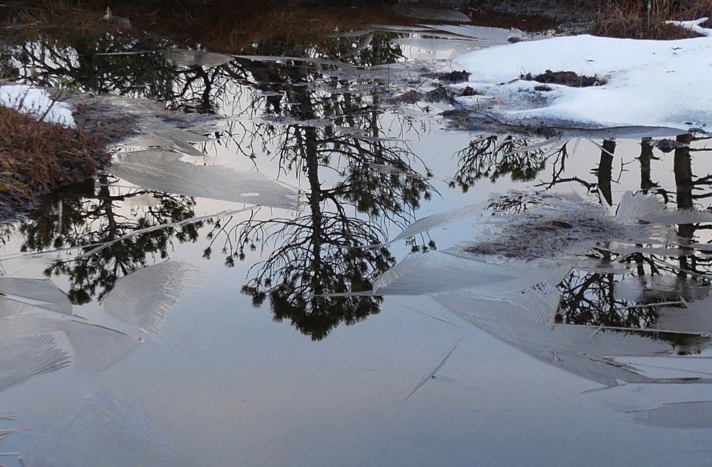 We climb an icy trail through a bull pine forest to the meadow, just in time to witness the clouds close over the hole. In Southeast Alaska we call these patches of blue in the marine layer, “sucker holes.” More than one pilot lost above the cloud layer had flown through one of these holes in hope that he will be able to find his way home beneath the gray. For more than one, this has been misplaced hope. Aki seems unaffected as the hole closes, dimming the day. But it ends any hope I had for a sunny, winter day.