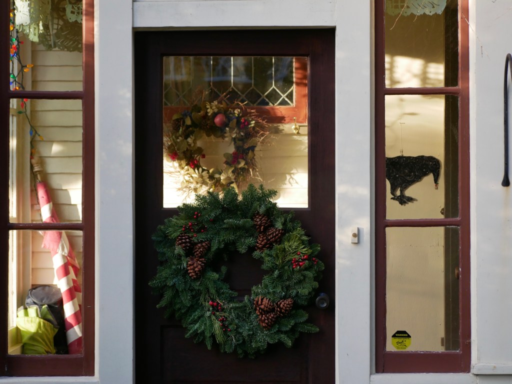 In s normal winter the little dog and I would be in danger of slipping on icy or crusted-over snow. But the stuff covering the moraine trail is soft and yielding. We pass the edge of a beaver pond covered with a paper-thin layer of ice. Water still pours over the beaver’s dam where some guy tried to dismantle it.
