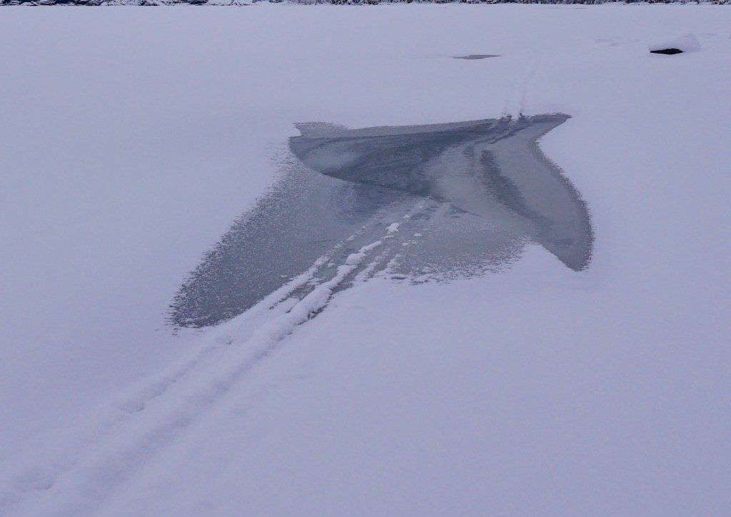 It feels like hands are reaching up and grabbing onto my skis. The skis had been gliding freely over the snow covering the shore of Mendenhall Lake. Then, they broke through crust covering an overflow pool. The resulting water on the skis acted like glue on the surface snow. In a few strides, inch thick blocks of icy snow were clinging to the ski bottoms.