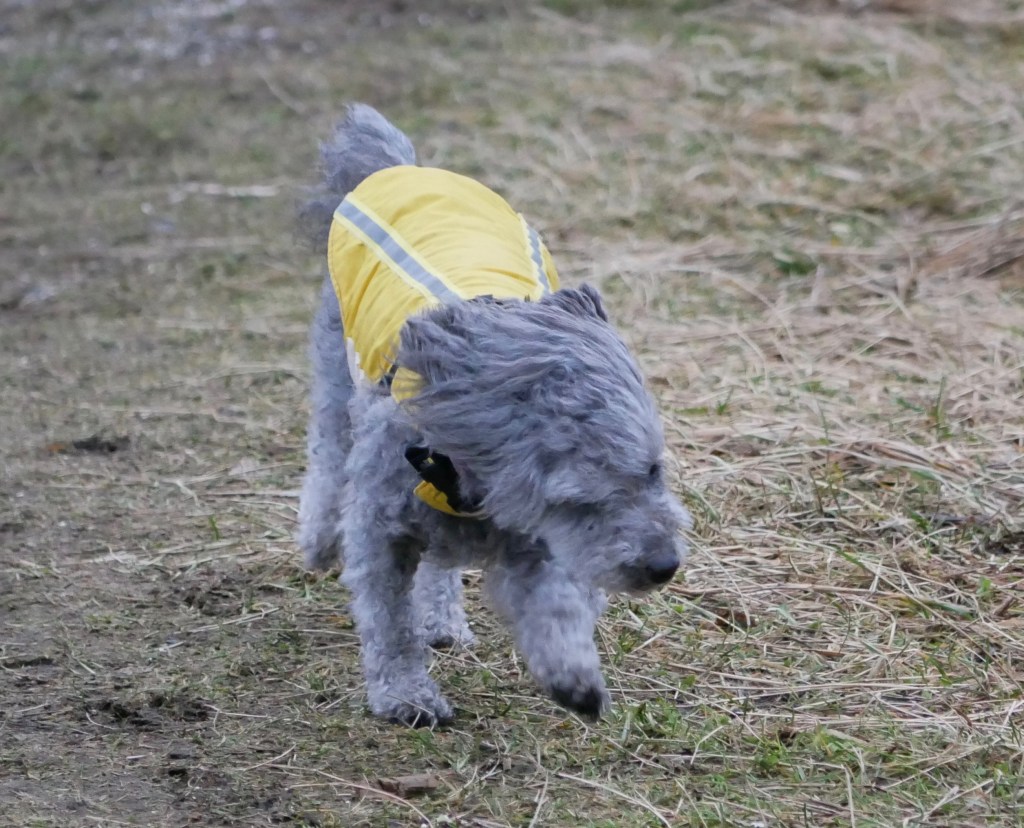 This is not going as planned. Aki and I are still in the woods, walking toward Point Louisa. A forty-knot wind is roaring through big spruce and hemlock trees, making them vibrate. The wind agitates Aki, making her jump each time it pins back her ears. It is worse when we leave the woods.