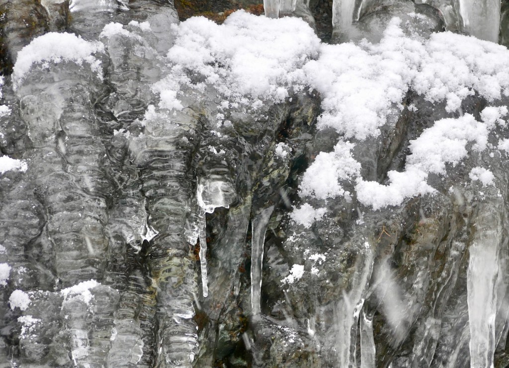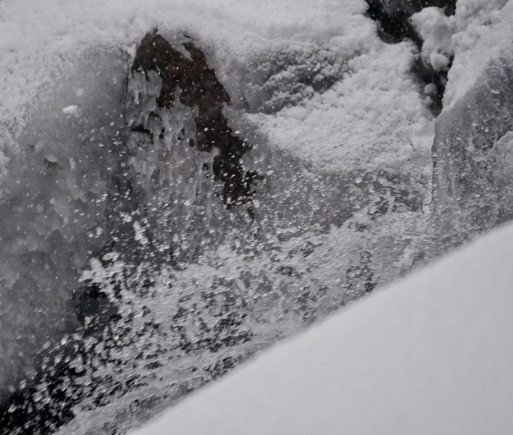Worried about her safety, I keep Aki on lead until we reach the Perseverance Trail parking lot. After being released, she takes advantage of her freedom to pay sniff and chase with two other dogs. While enjoys herself, I study the shimmering light coming through ice cycles clinging to the undersides of cliff rocks. Another dog walker pulls me out of my reverie by saying, “What a beautiful day. I am so glad that winter is not over.” Aki, who has just rolled in the new snow, must agree.