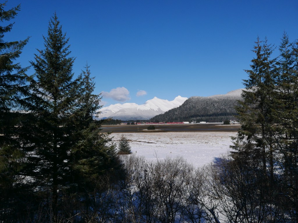 We slip and slide back to the trailhead and walk towards salt water. Much of the trail is bare or covered with packed snow. If the wind wasn’t blowing hard, the little dog and I could loiter long enough to appreciate light sparkling the sheets of paper-thin sea ice left on the meadow grass by this morning’ retreating tide.