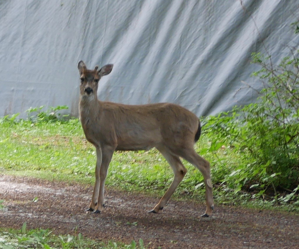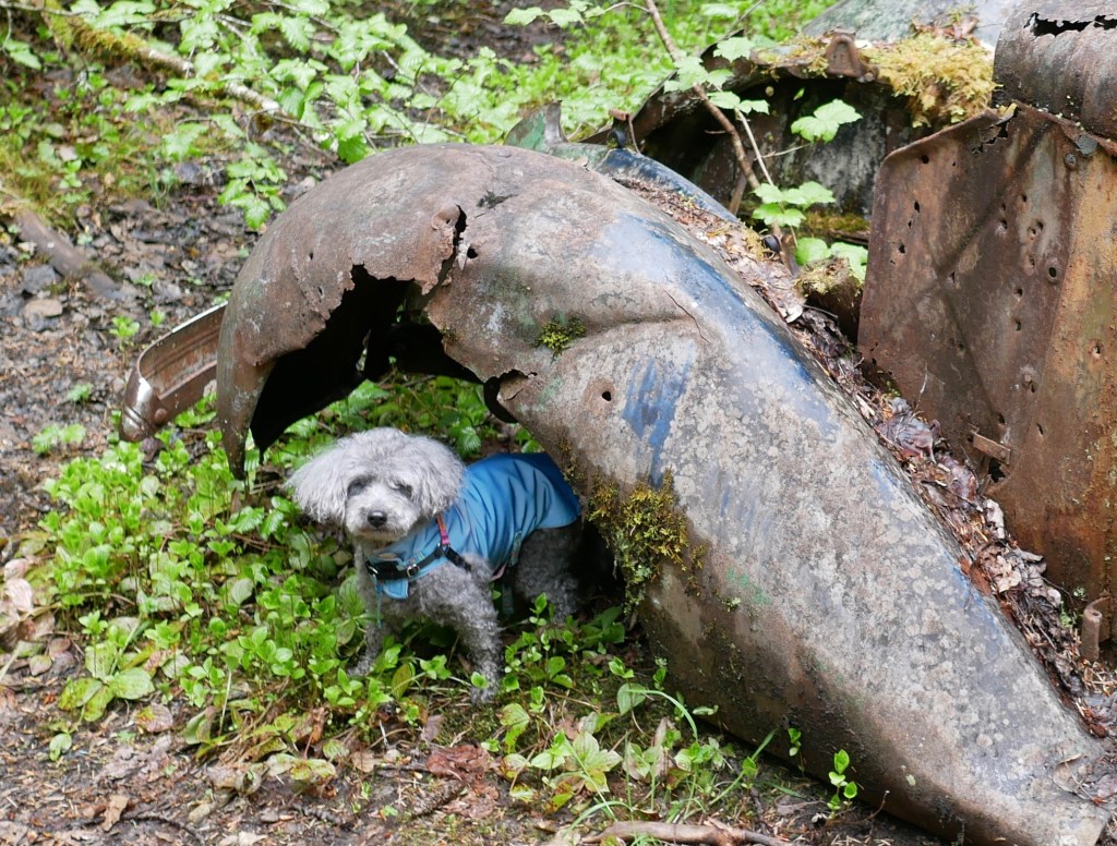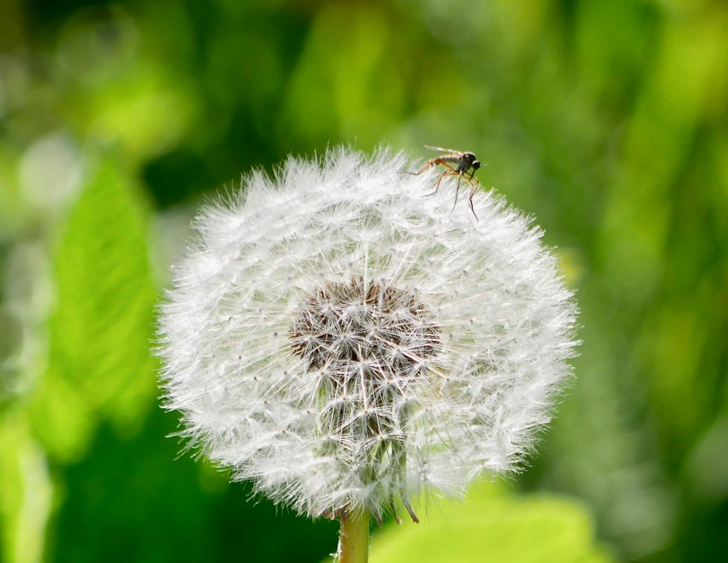 Aki tries to slow me down. She hangs back to investigate every smell. When I can no longer see her, I stop and wait, investigating the small things that I would otherwise rush past: backlit lupine, the head of a crow moving above the blades of newly green grass, a mosquito perched on a still-intact globe of dandelion seeds.