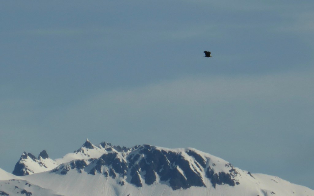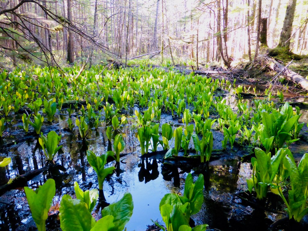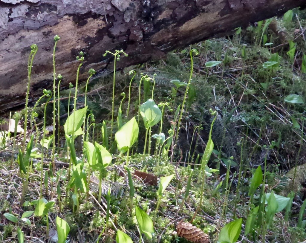 The tips of fragile ferns have already unfurled, marking the end of spring. While Aki reads her pee mail, I check the blue berry bushes for blossoms. We and the bears will have to look elsewhere for our berries this year.