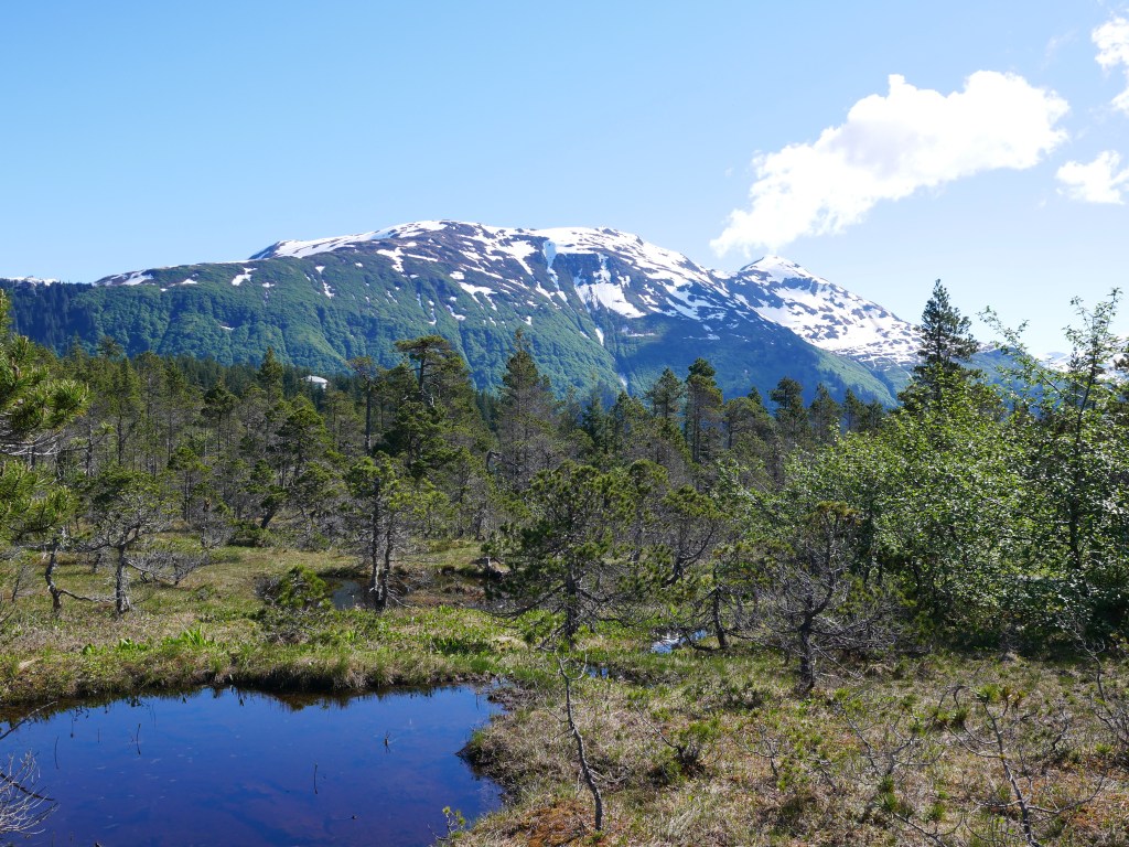 This morning, Gastineau Meadow seems more city park than a place where wolves run down deer. In part it’s the sun flooding the place with warmth and light, which makes me want to lie down on the meadow and watch the movement of clouds. It’s also today’s unusual assortment of trail users. Usually, Aki and I have the place to ourselves. On busy days we might pass one or two dog walkers.
