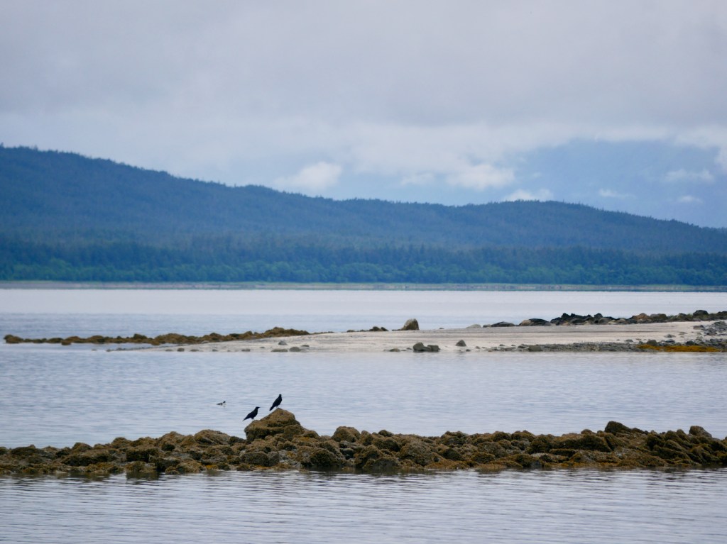 Not wanting to contribute to the mallard hen’s stress, I follow Aki down the beach trail. A seal swims just offshore, hunting for silver salmon about to leave salt water for their spawning stream. Yesterday, I hunted salmon in Lynn Canal, boating a silver-bright chum salmon. Last night, while Aki chowed down a scrap of the salmon’s ski mixed with rice, her humans enjoyed what the seal sought.