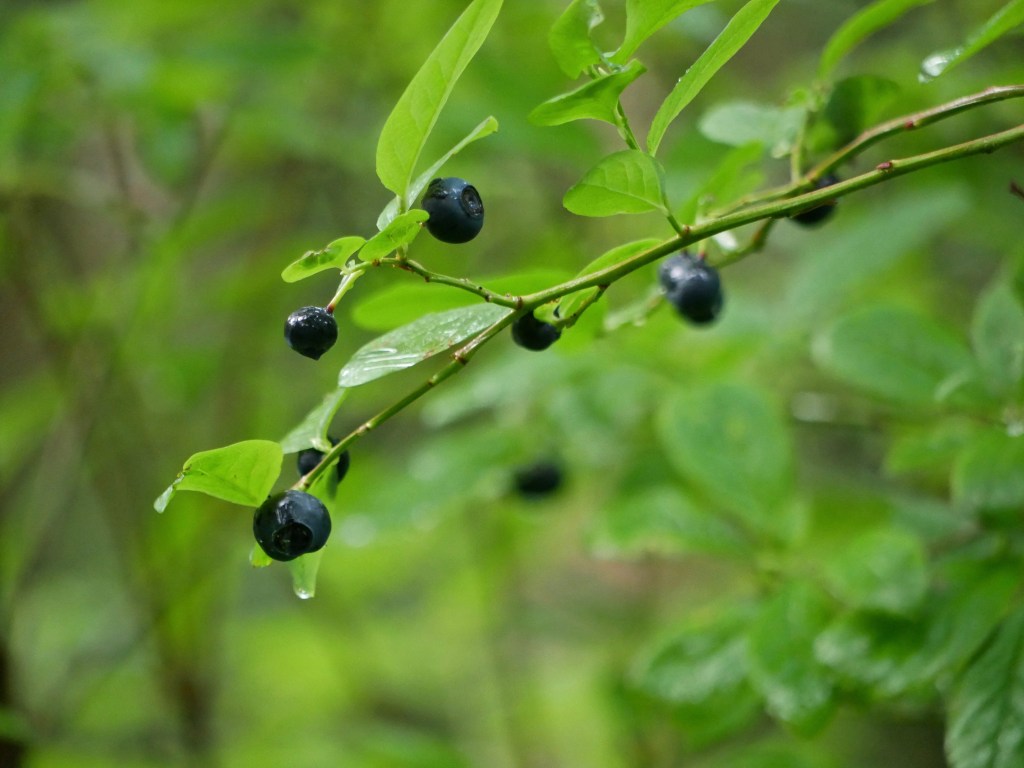 Because I can’t find any blueberries, I snatch a huckleberry and pop it into my mouth. While expecting the usual insipid flavor, I am surprised by its rich, fruity taste. A blue jay screams abuse at us as I consider grabbing another berry. But Aki is ready to move on, so we do.