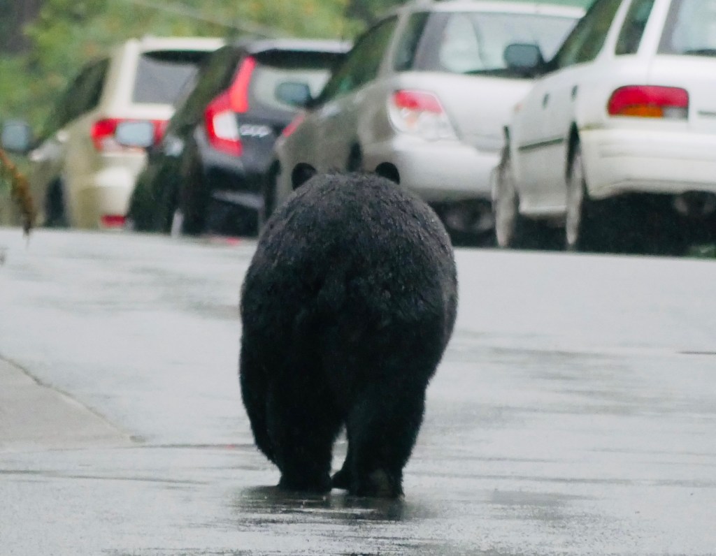 This morning the bear has moved on to a neighborhood this is having its scheduled garbage day. We are left to skirt piles of bear poo and pick up scraps that it left behind. I can’t get too mad at the culprit. Since the local berry crop failed and few salmon made it to the downtown spawning stream, they are forced to search our garbage for the sustenance they will need to hibernate through the winter.