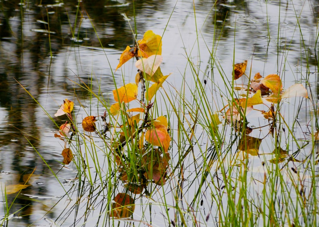 The sun shines on this damp forest as Aki muddies her paws on the rain soaked trail. Streaks of light turn fall-yellow leaves almost transparent. We can hear the Eagle River moving at near flood stage after a long stretch of heavy rain. We can feel a light wind that sends fragile leaves twirling. After our summer of storms, there is no place I’d rather be than in this riverine forest.