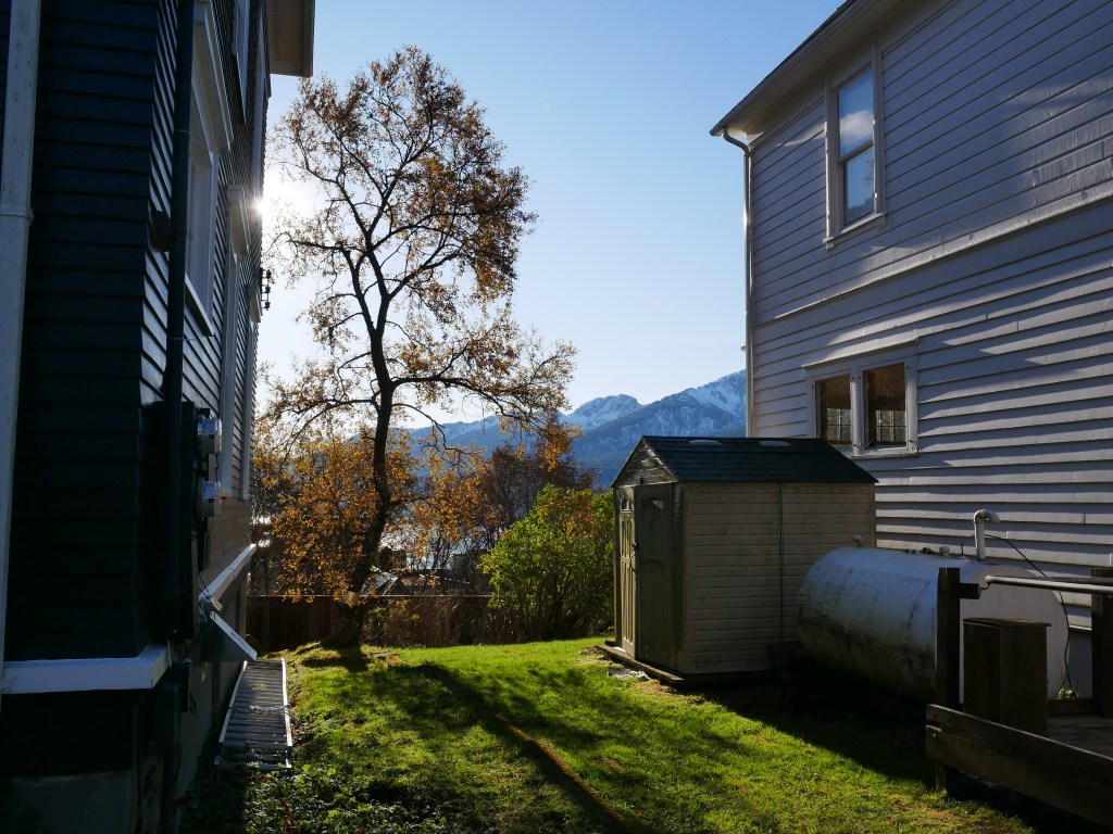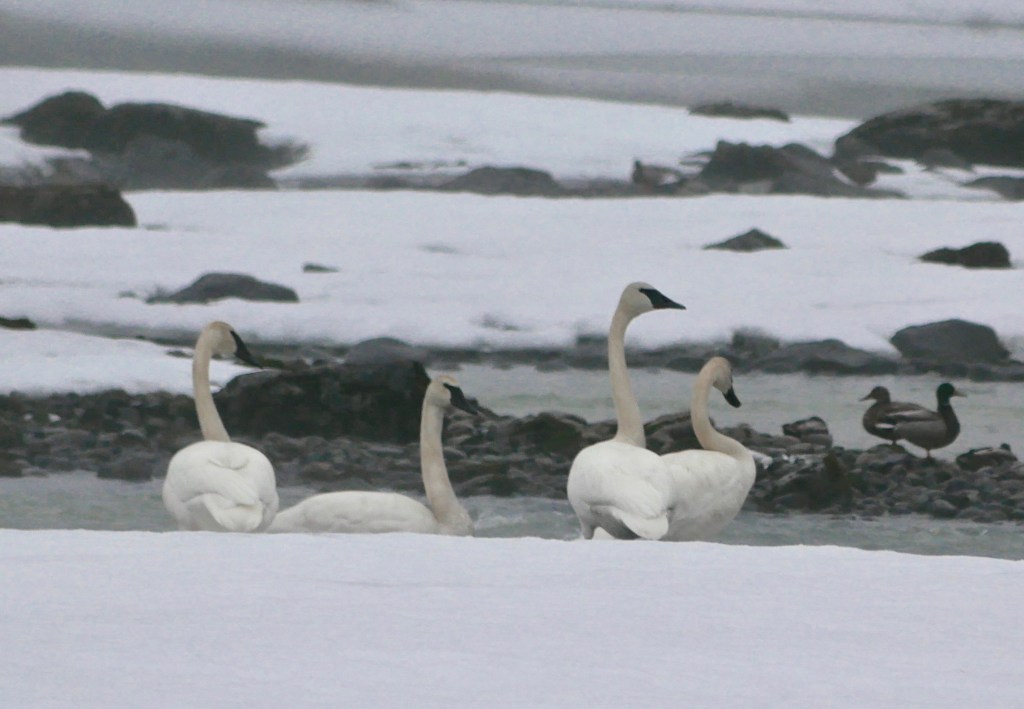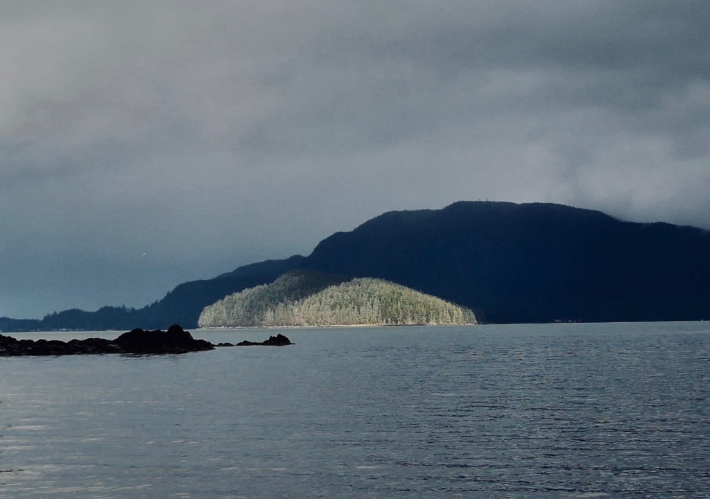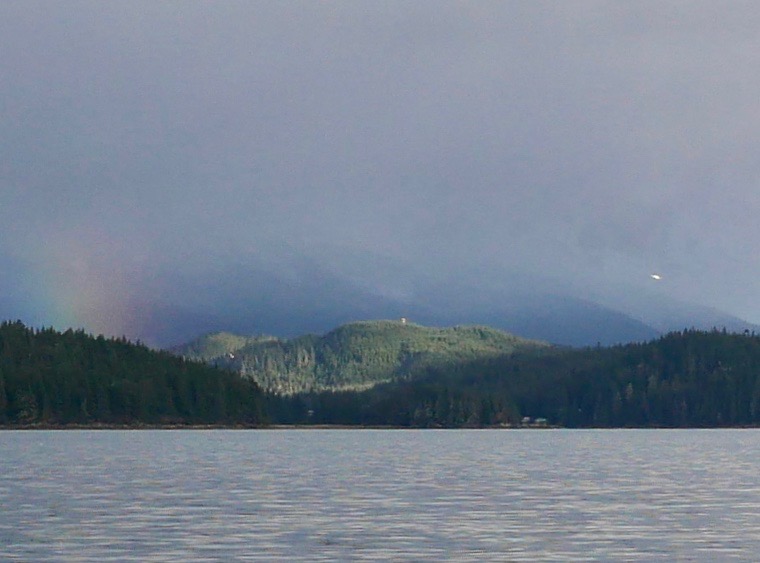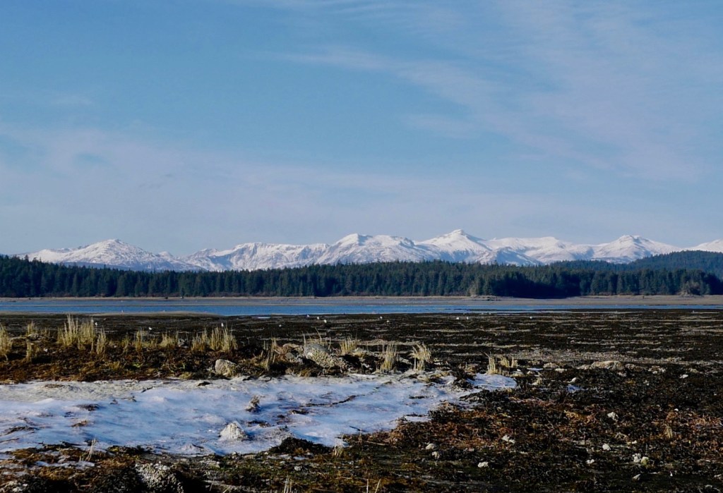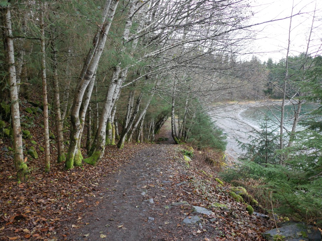 By the time we reach the beach itself, the golden eye contingent moves first toward the tip of False Outer Point and then paddles together into Fritz Cove. While Aki sniffs and pees, I search for piles of loose seaweed along the waterline. Most of the time I have to walk to the end of the beach before finding what I am looking for. After filing the buckets, I start up the beach for the car. Just before starting up the hill, I pass the golden eye pod, as they return to their beachside feeding grounds.