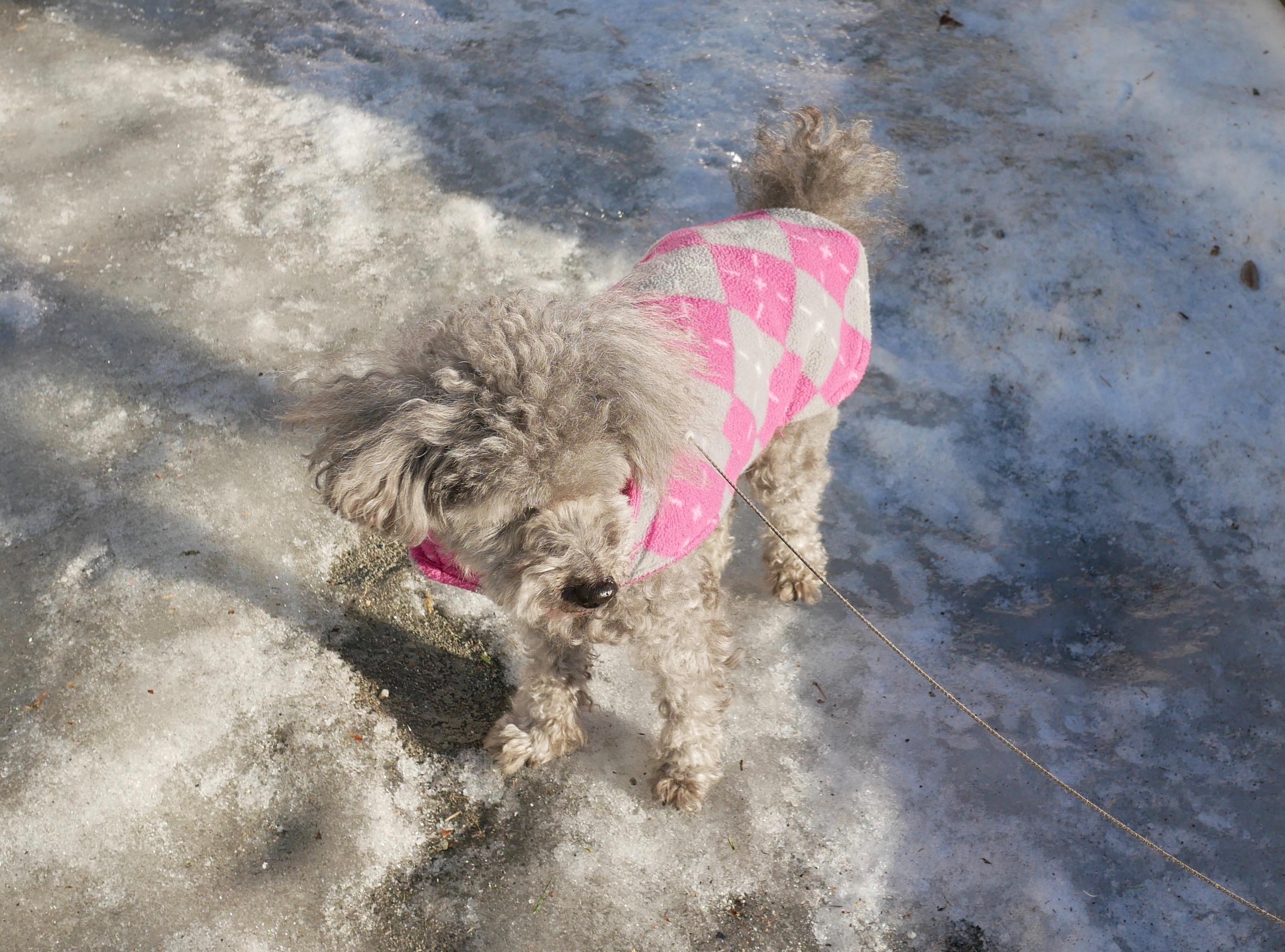 Aki lets me walk into the beach alone so she won’t inadvertently chase off any ducks. It’s a wasted effort. The place is empty until two gulls land near the beach. But we can still see a bit of the sun powering through marine clouds to reflect some light on a patch of the offshore water.
