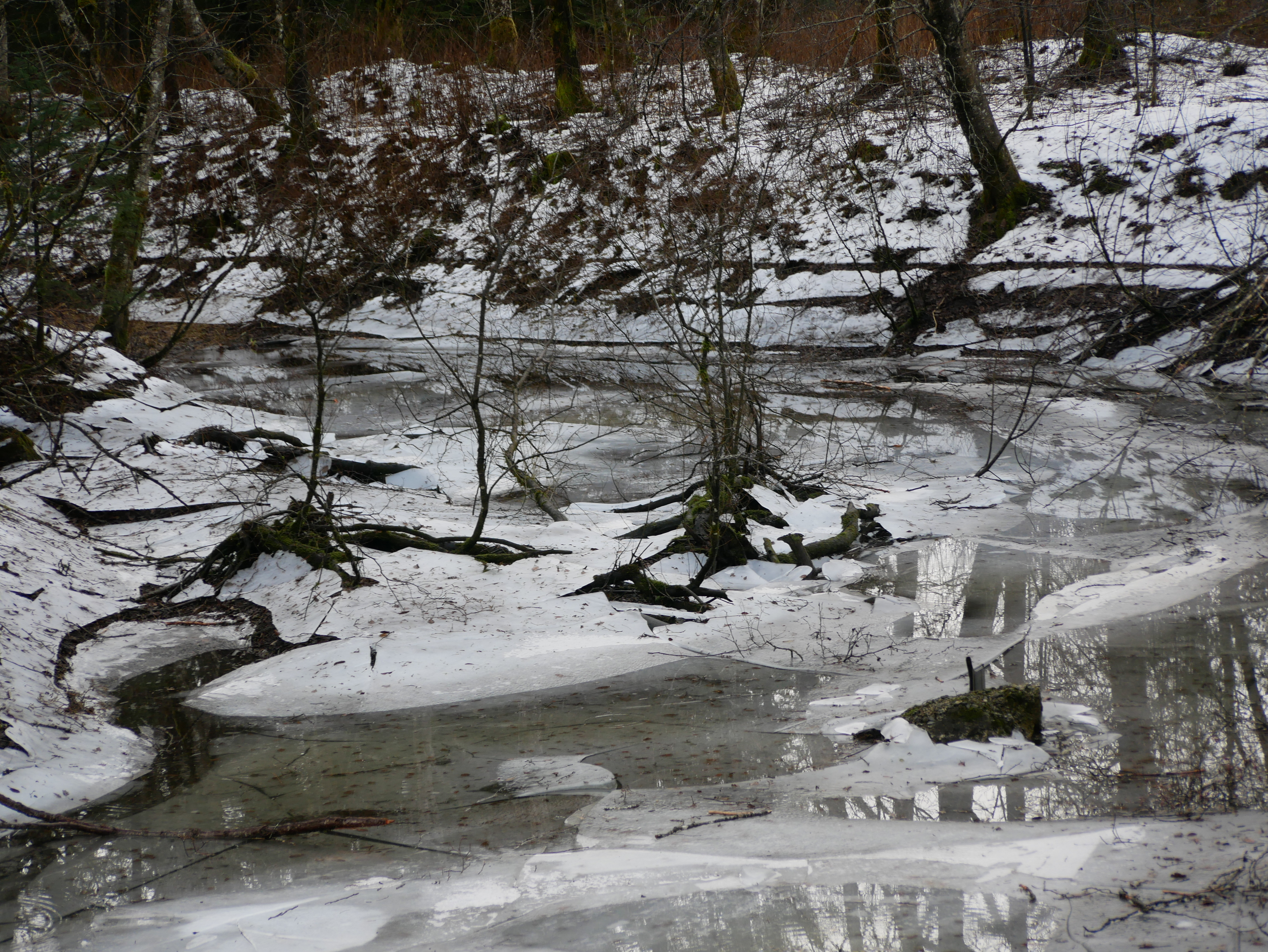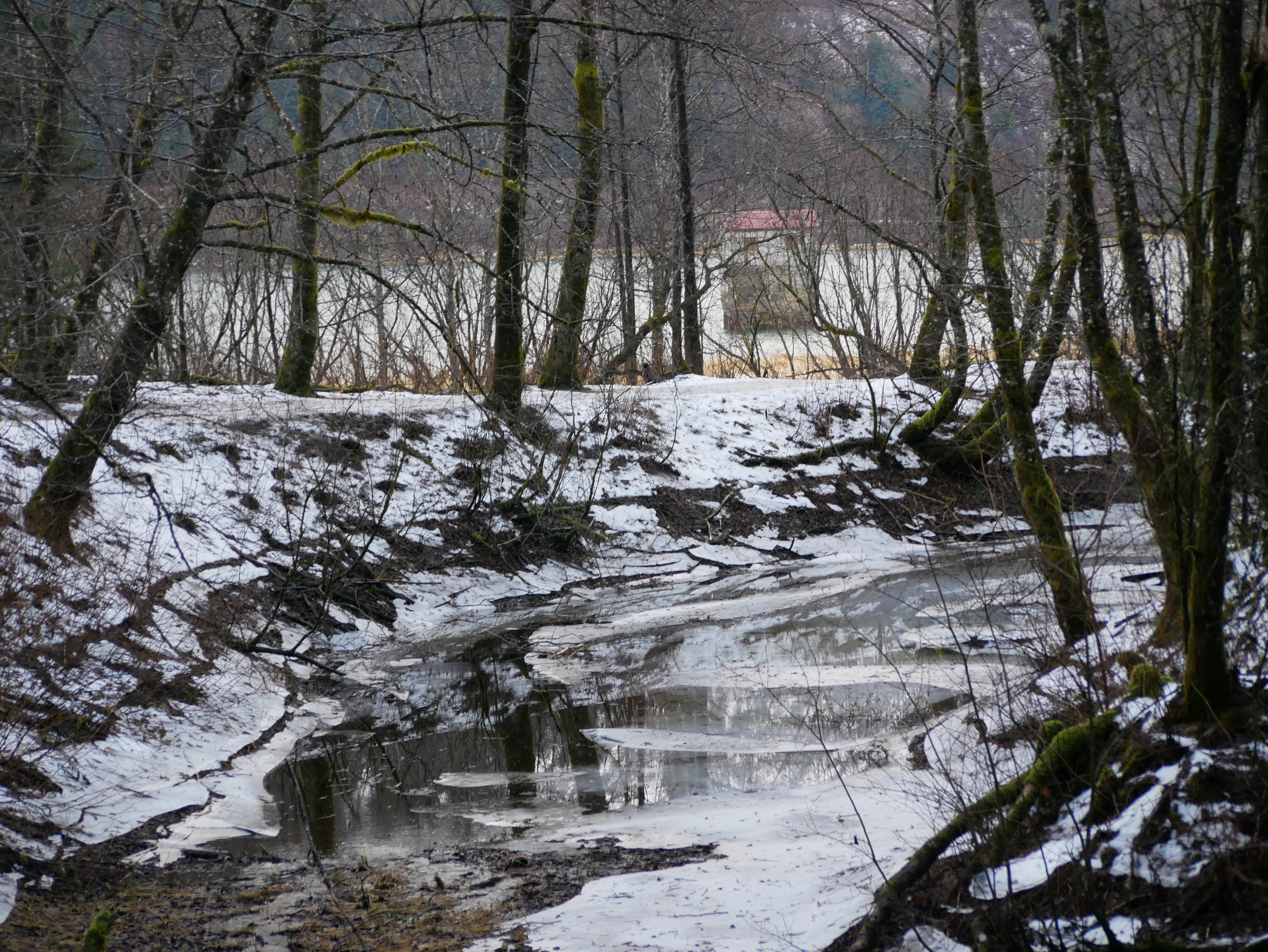 The trail to Favorite Channel is empty this morning. I am not surprised. Slip ice covers the trail. Without grips, I would have already fallen on it. This is getting to be an old story. They are usually almost always true. This one is.