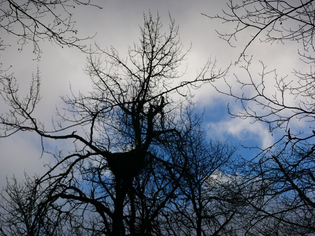 The trail is covered by slick ice, made even more slippery by pools of snow melt and rain water. At least one dog walker had to retreat back to the parking lot after walking a few steps down the trail. The ice grippers that cling to my boots make my passage safe.