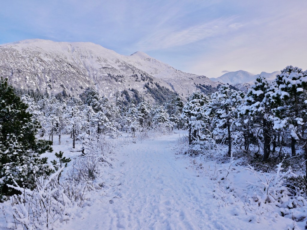 Aki and I don’t need to leave our home neighborhood to find snowy beauty. It hangs like Christmas decorations from every house or spruce tree. The low blanket of snow clouds hide most of Gastineau Channel and all of the mountain ridges. Aki takes every opportunity to read the scent trails. I take advantage of the resulting delay to appreciate the little beauties of mining ruins and rusty cars trimmed with pure, white snow.
