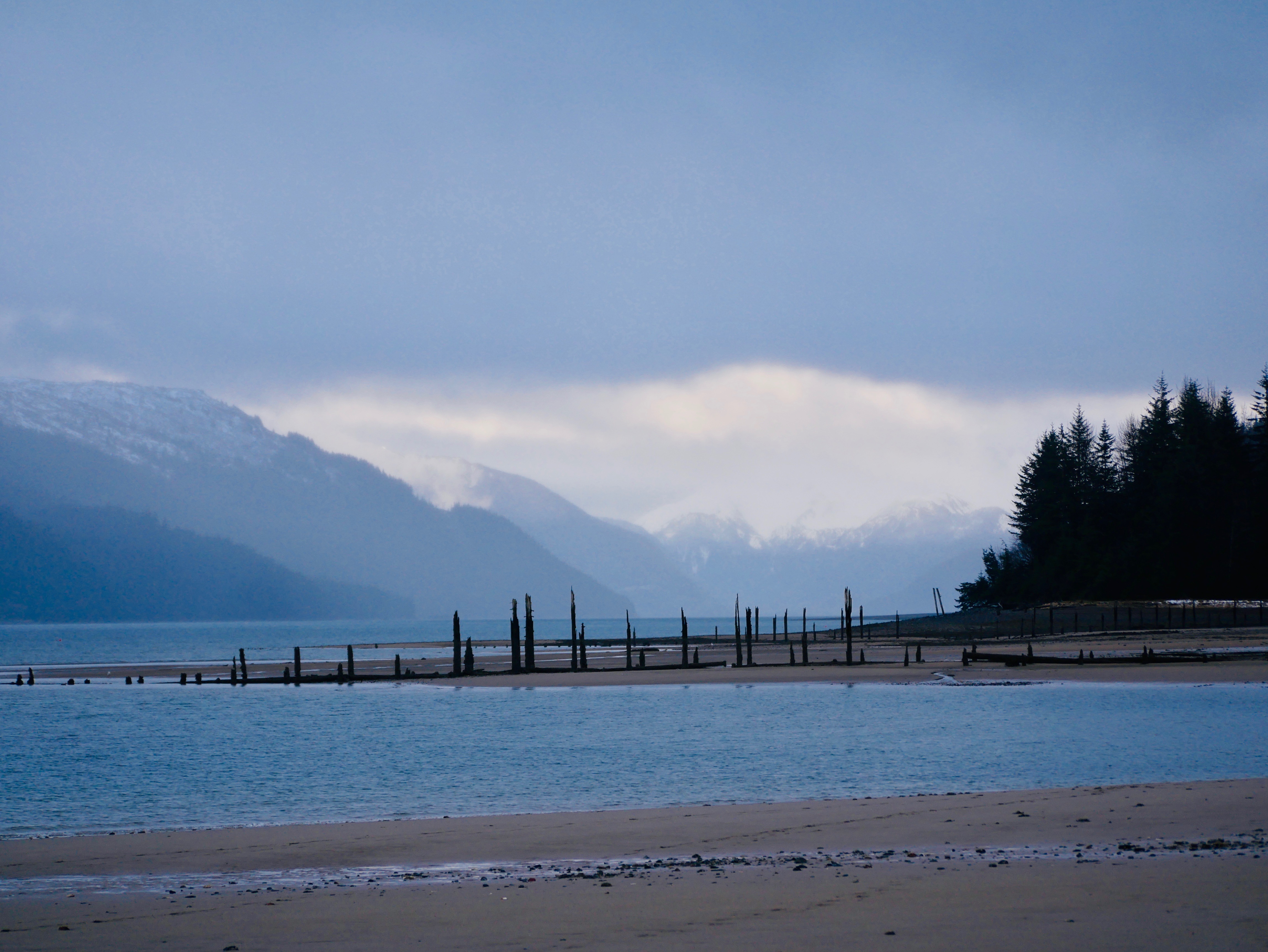 We stop near the bottom of Main Street to watch an eagle. It sits on top of a pylon, trying to ignore the rain. After flashing me a judgmental look, it turns away to watch the now-empty Gastineau Channel. You rarely spot an eagle this close to downtown Juneau. They go where the food goes. A small raft of ducks just moved down channel. Maybe the eagle will soon follow them.