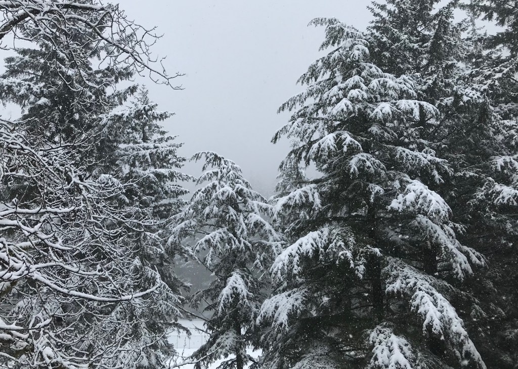 We hadn’t seen the sun shine for a week, maybe two. Every morning my computer weather app. had predicted another gray, snowy day. Every morning during the past two weeks, the temperature climbed above freezing and stayed there until late in evening. The warming weather didn’t stop the snow from falling, only made sure that it would melt just as it hit our streets and trails. Last night the sun did appear, causing me to check the weather app. It promised that tomorrow would be a sunny day, followed by at least another week of snow.