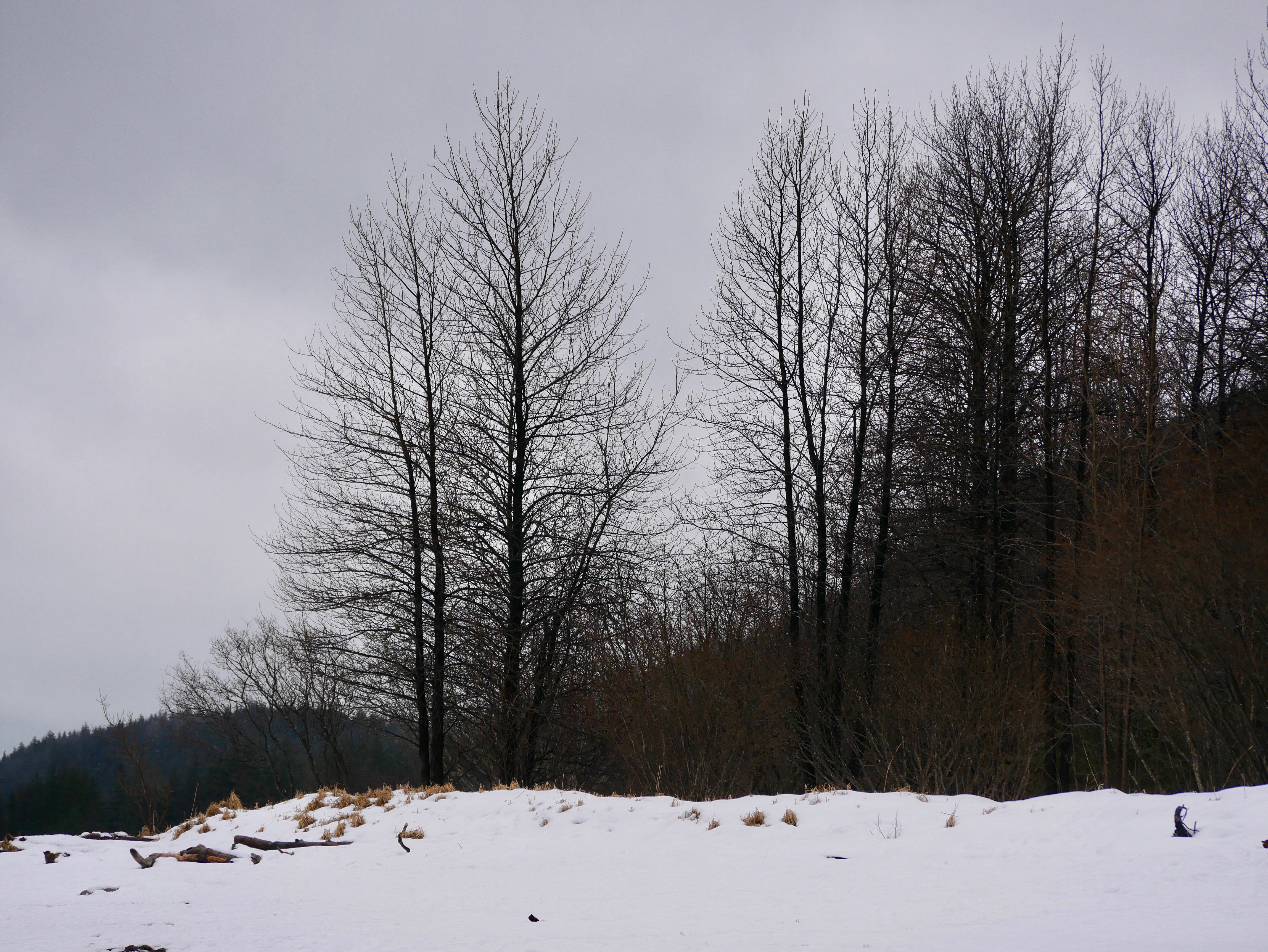 None of the other willows along the beach are blooming. I wonder if the flowery one is a wise predictor of winter’s end, or a short-lived fool. Then I leave the beach and climb a steep trail toward an eagle’s nest. One of the nesting birds calls out on our approach. But none of them make themselves visible from the trail.