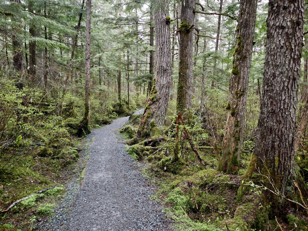 I’ve gotten spoiled by the forest’s rich beauty. If visiting from the Lower 48, I would be overwhelmed by the colors, textures and shapes of the trees we pass between to reach a North Douglas Island beach.