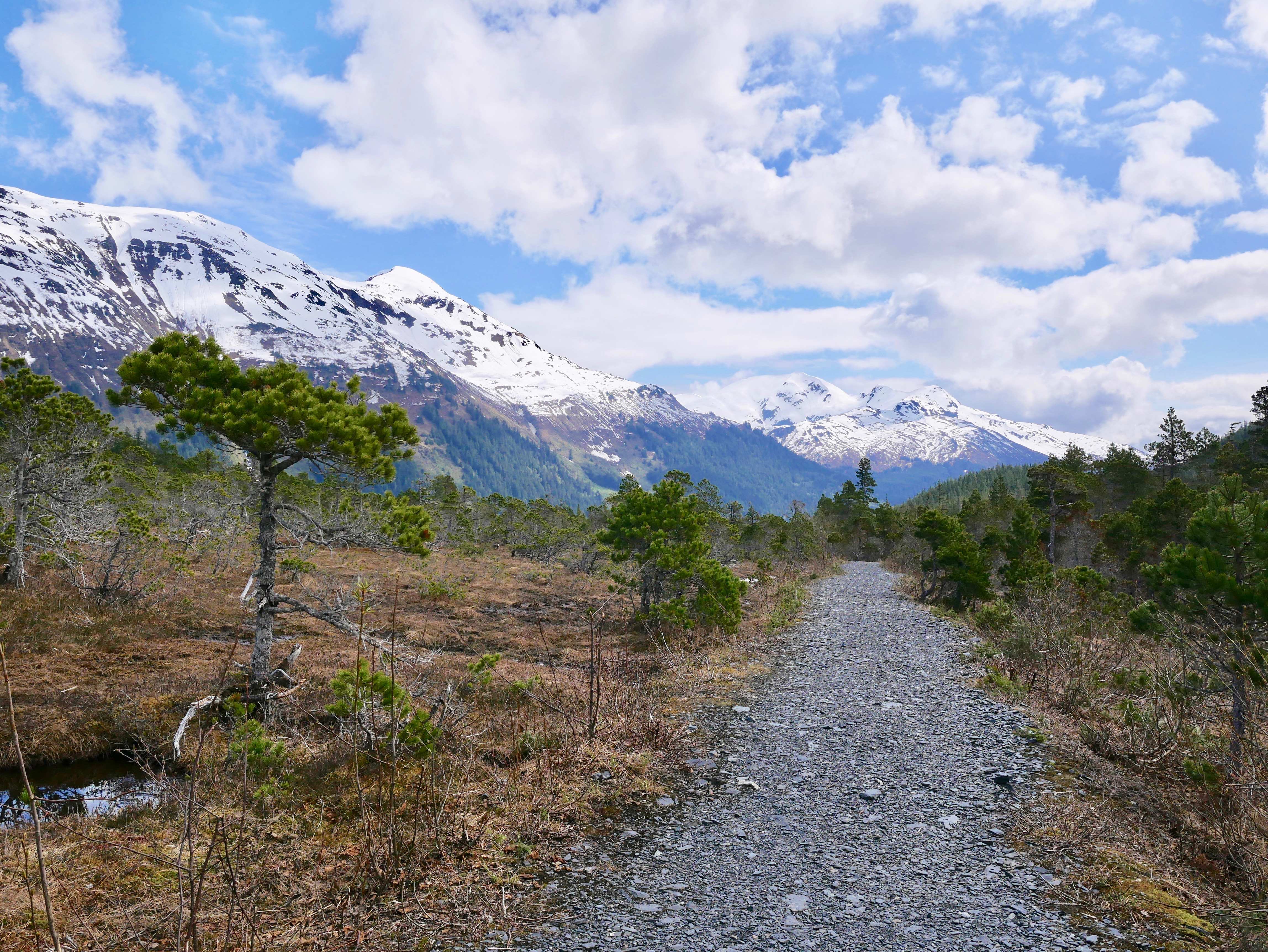 The sun has shone on Juneau since we woke up this morning. Knowing the temperature would climb into the high 40’s later in the morning. I delayed leaving with Aki for a morning walk. At 11 am I attached a collar around the little poodle-mix’s neck and sat on the steps to pull on my mountain boots. The sun warmed my face and baseball cap. Then, it disappeared behind a wall of clouds.