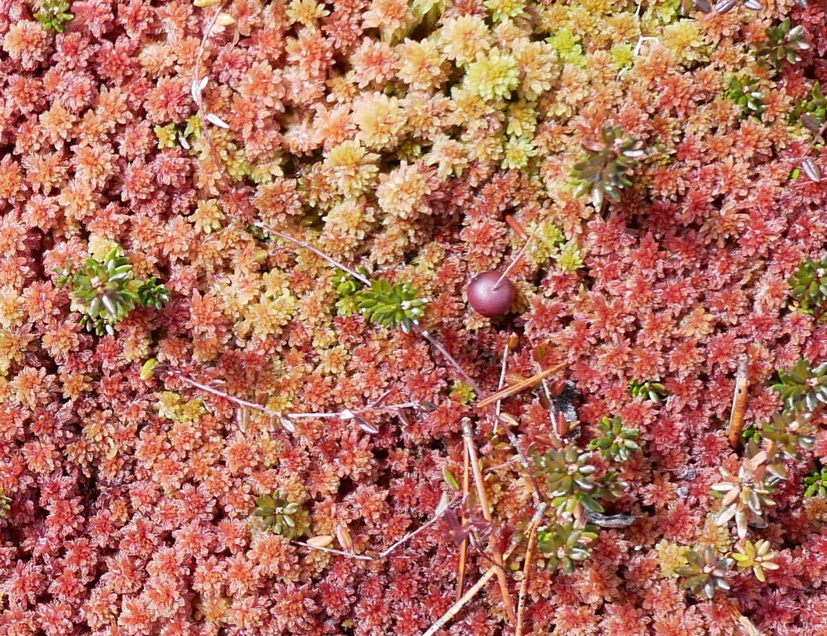 On the way back we parked next to a connection of lower mountain meadows. We started to cross a snowfree one. The sun that had been lighting up the meadow disappeared behind a wall of clouds, making the temperature drop a bit. The colors of meadow and pine trees dropped as well. Wanting to salvage something from the visit, her other human and I lead Aki in a hunt for cranberries. In a few seconds we found a small scattering of them on a circle of red moss.