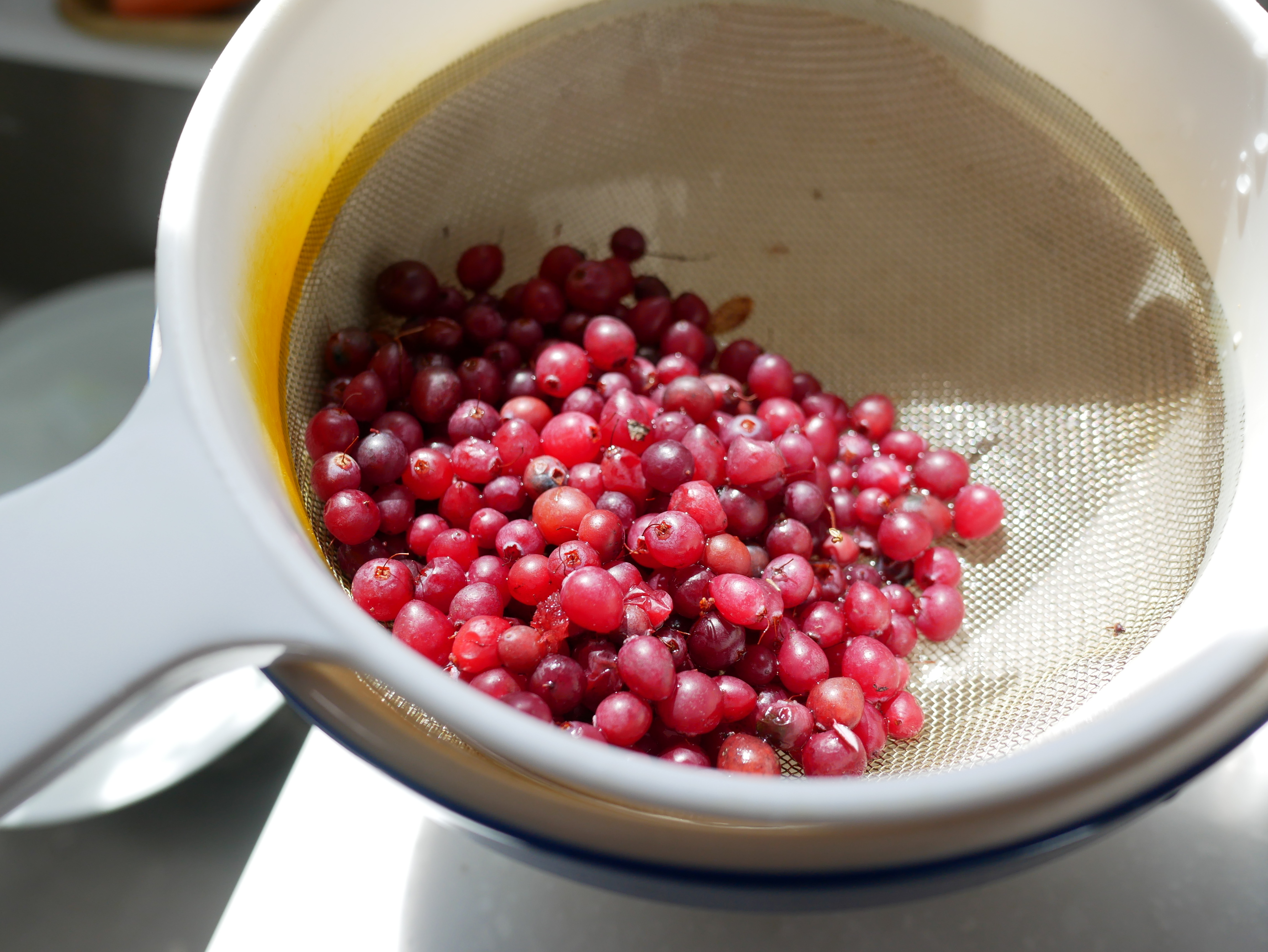 Early last Summer, tiny cranberry plants set flowers on the moist surface of the meadow. Tiny insects fertilized the flowers so the plants could produce dark, red berries. Birds ate some that fall. But most just laid on the muskeg meadow until covered with snow. This week, melting snow exposed the tart little berries, which we picked until we had enough to take home for a powerful little dessert.