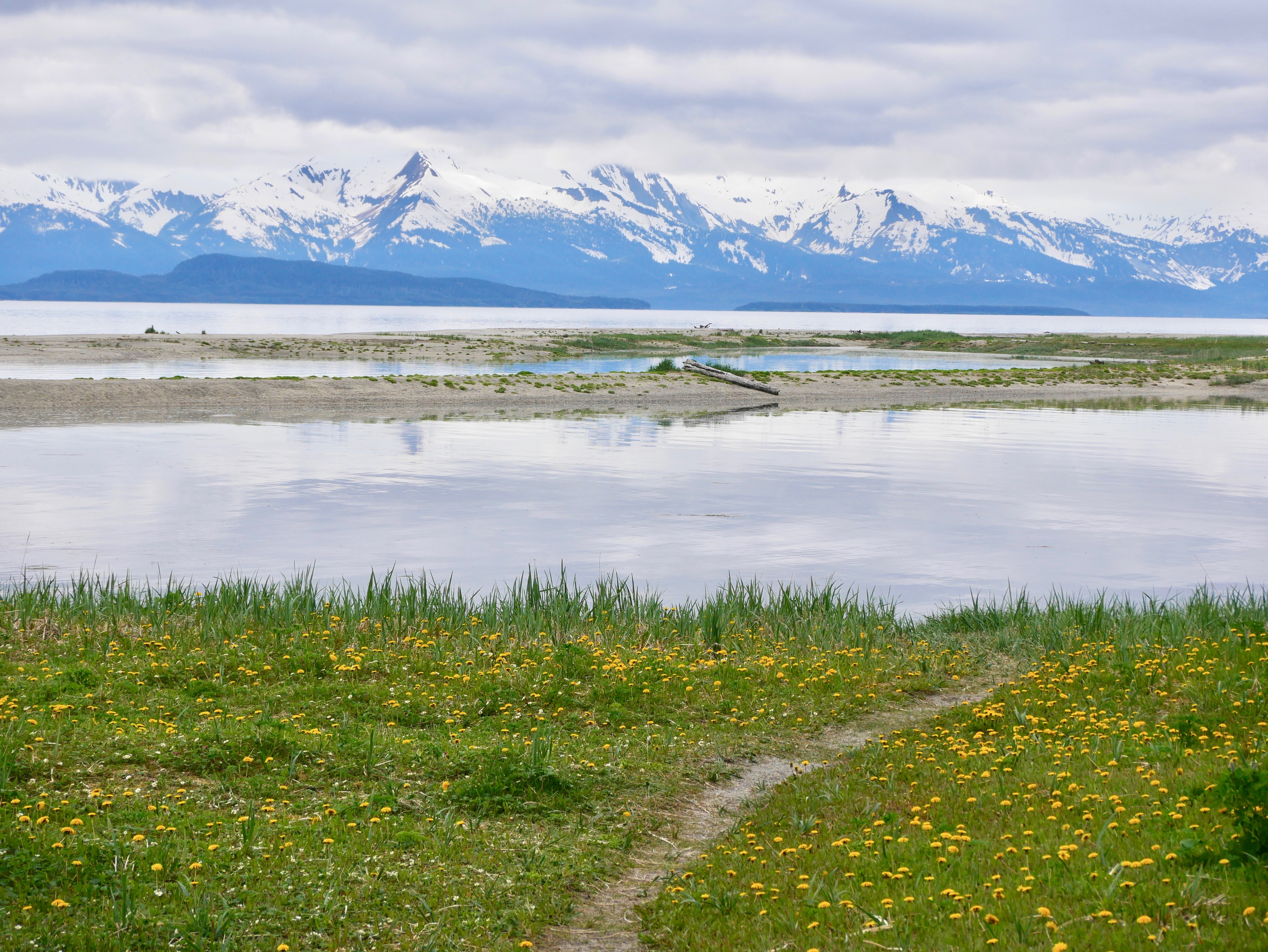 The Eagle River picnic area was empty this afternoon, until we reached some covered tables. Fifty or sixty people—-kids through adults—were chatting there. One of them told me they were having a U.S. Coast Guard party. The woman also said that she just saw a cinnamon bear eating grass in the nearby field.