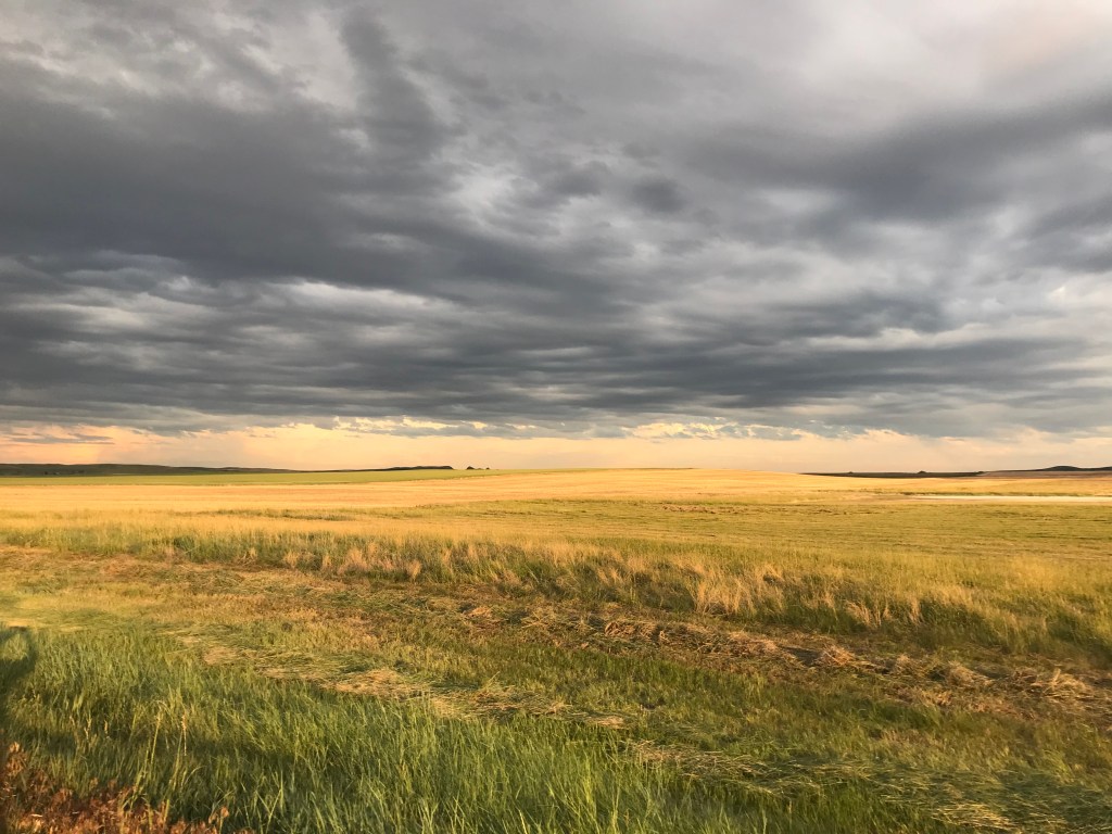 Now my sister and I are visiting our grandfather’s homestead wheat ranch. The locals tell us this year’s crop needs more rain. Dark clouds in the sky could take care of that problem if the wind wasn’t moving them toward the mountains.