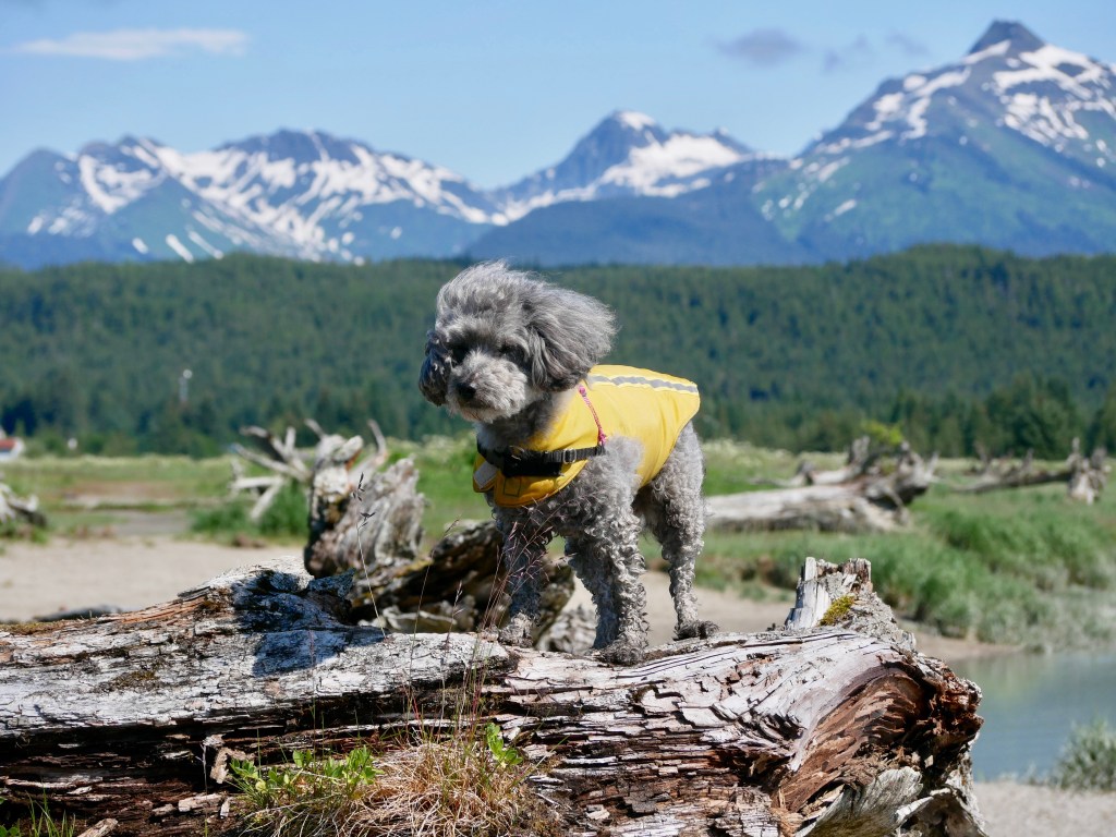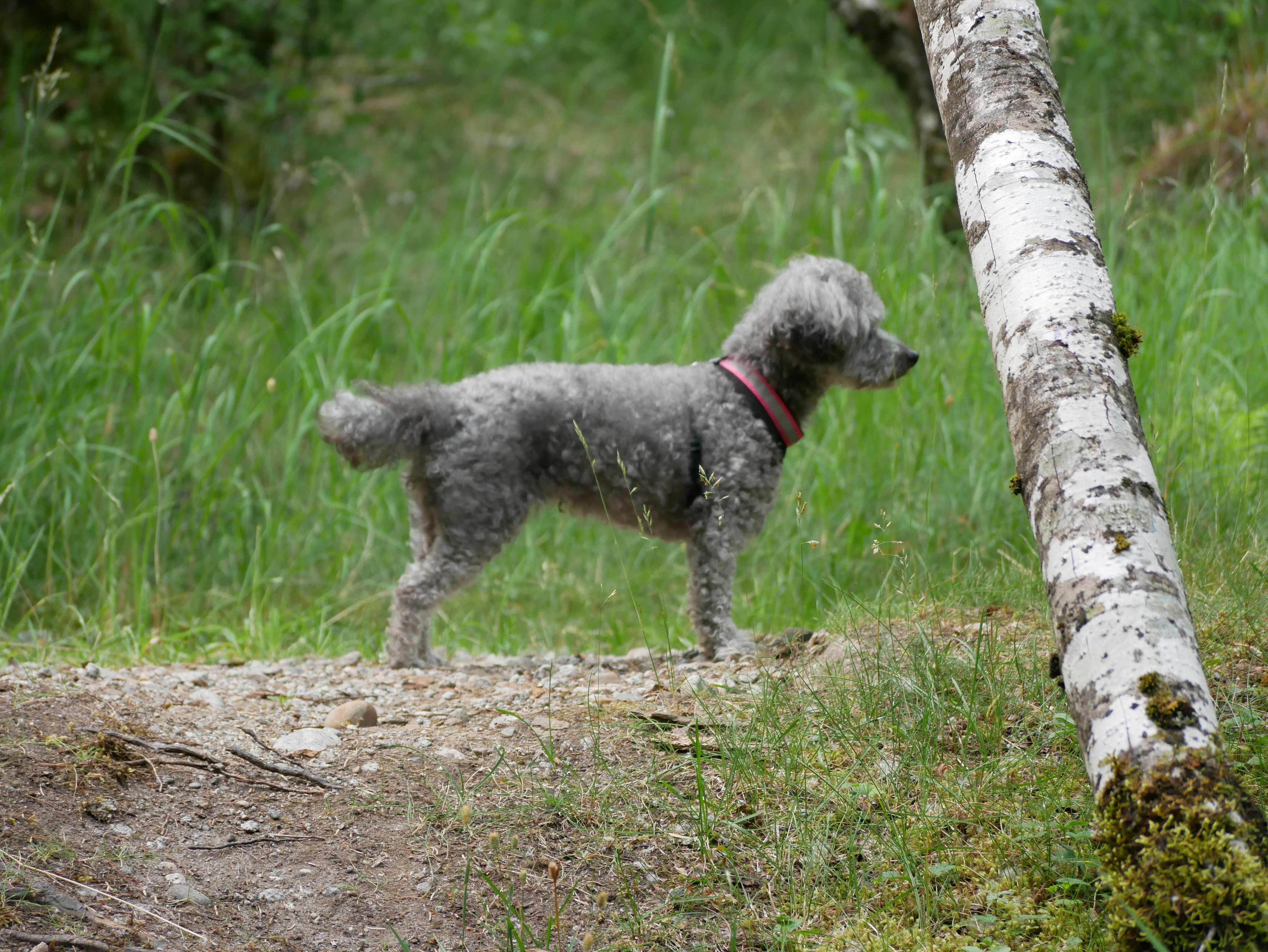 I want to share my happiness with the little dog but she is not in the mood. She has assumed two roles today—-chronicler of smells, and guardian of her human. In past Septembers she has chased bears from this trail into the river or up a tree. I’ve scolded her after each action but know she would do it again if given a chance.