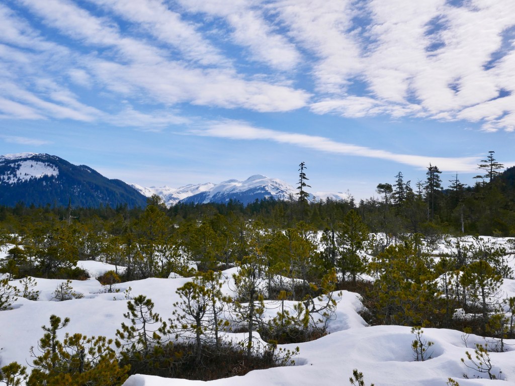 We rain forest dwellers take special care with our roofs. Under a good metal roof, you can fall asleep to the sounds of rain drops. Wearing good rain gear allows you to enjoy the sound of heavy rain drumming on broad-leafed plants, like devil’s club and skunk cabbage. This morning the rain is beating a comforting tattoo on the plants that lines the Rainforest Trail.