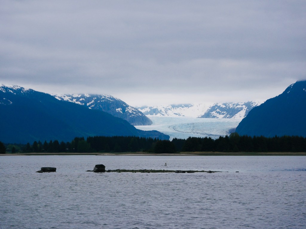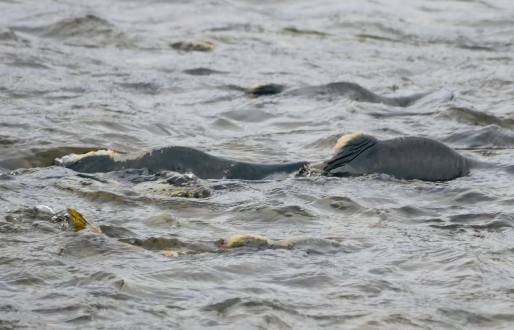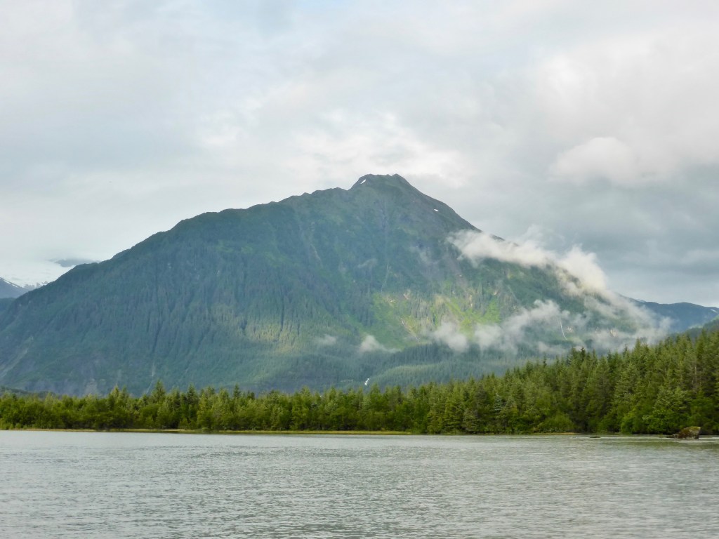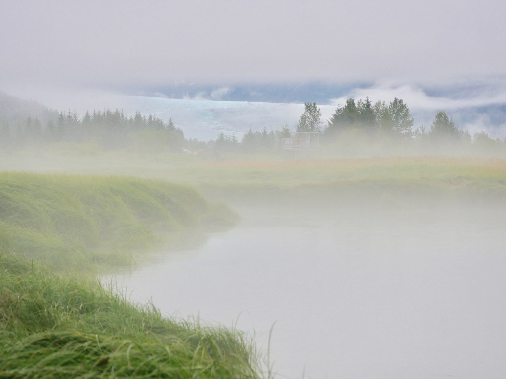 The tide was completely out when we reached the Fish Creek Delta. It was a minus three foot tide, one of the lowest of the year. A dozen bald eagles had assembled close together in a shallow water section of the Mendenhall River. Every once in a while they would burst into the air and then drop back to the river shallows.