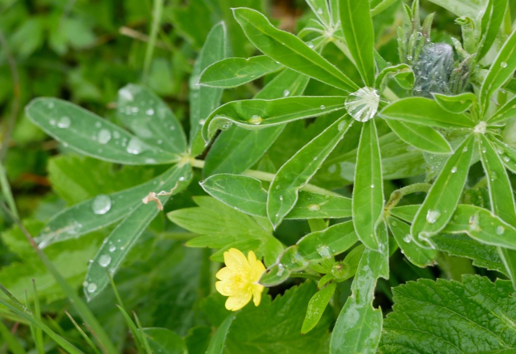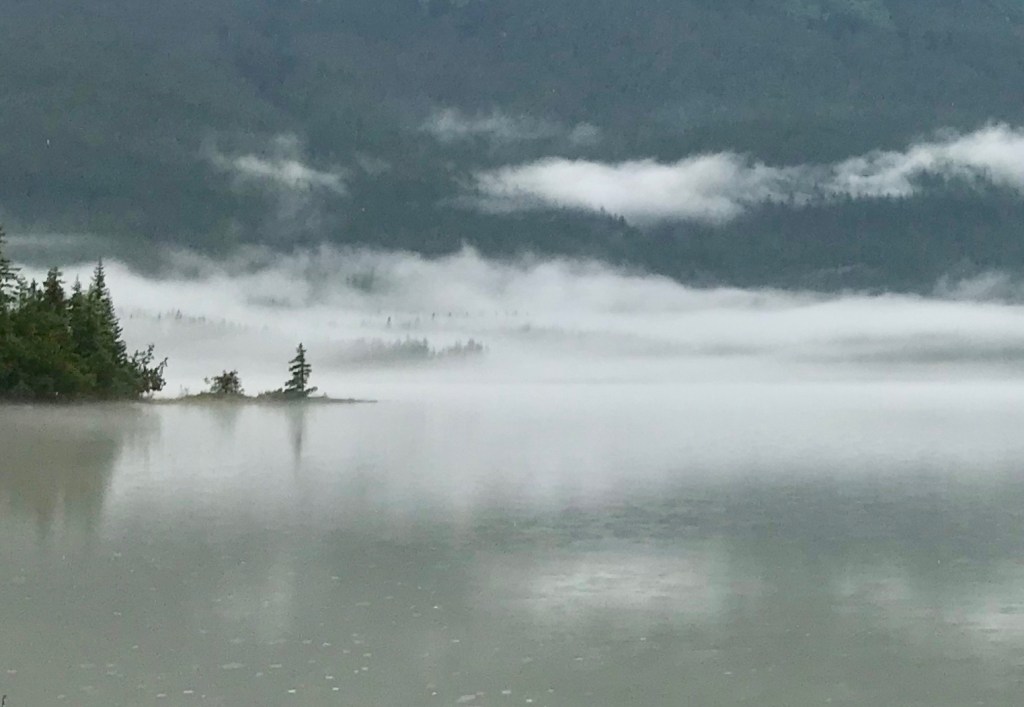 Rain starting pounding on the house as I got ready for this morning’s hike. Even though she couldn’t see the rain while still inside the house, Aki, the dog, looked discouraged, like a dog who would be happiest staying warm and dry at home. But she still waited at the door was I pulled on boots. Happily, the rain had just stopped so we didn’t get soaked while walking the car. It started back up as we backed out of the driveway.