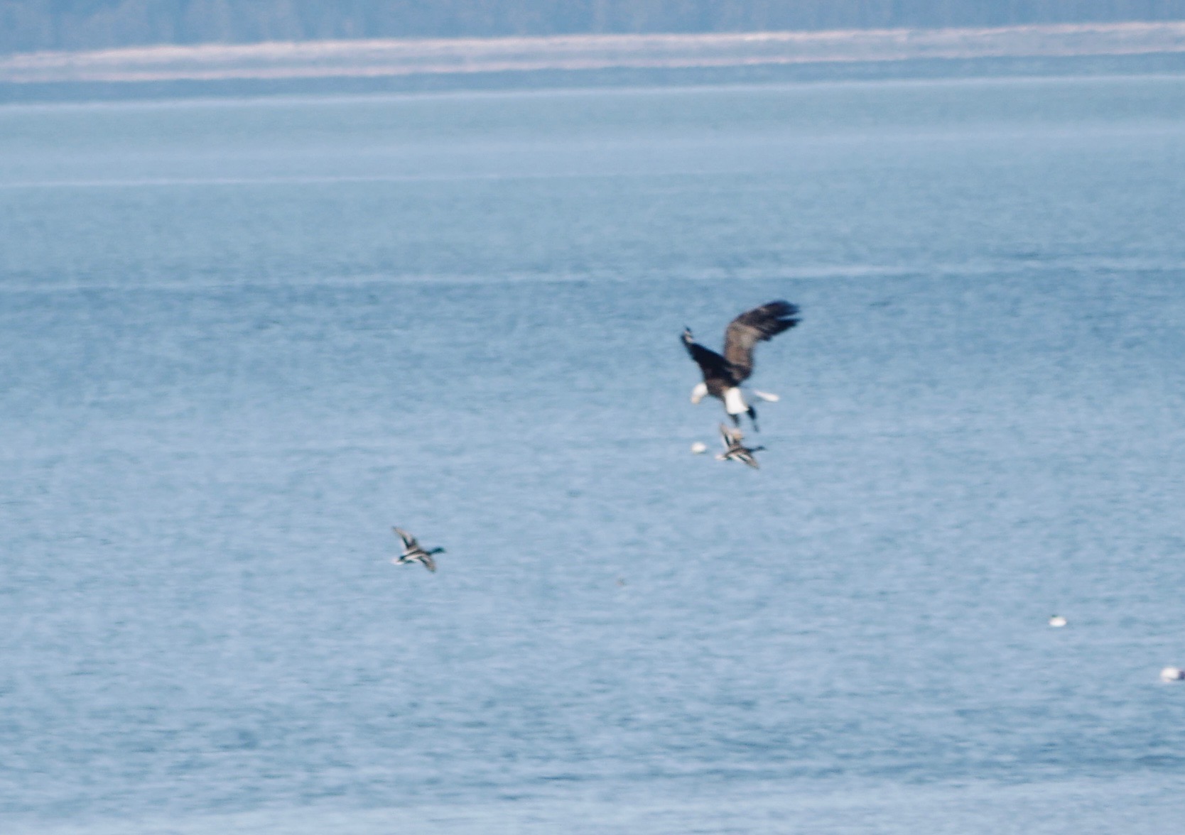 The tide was completely out when we reached the Fish Creek Delta. It was a minus three foot tide, one of the lowest of the year. A dozen bald eagles had assembled close together in a shallow water section of the Mendenhall River. Every once in a while they would burst into the air and then drop back to the river shallows.