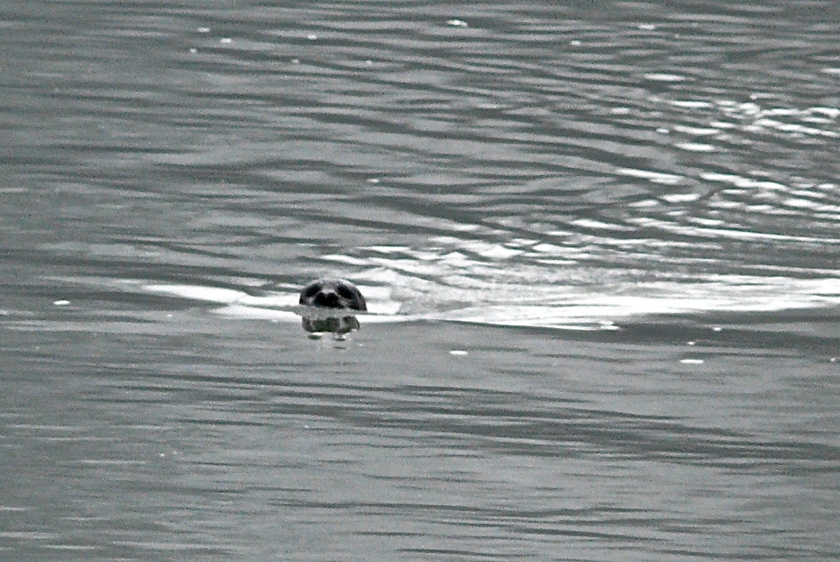 We never met any other skiers during most of our ski. We saw more tracks left by wild animals than those left by people and their dogs. When checking out one photo after we returned home, I noticed the solo tracks of a red fox left it left while leaving the woods to cross the lake last night. Closer to the start of Mendenhall River, we had to ski over heavier tracks left early this morning by what might have been a lynx.
