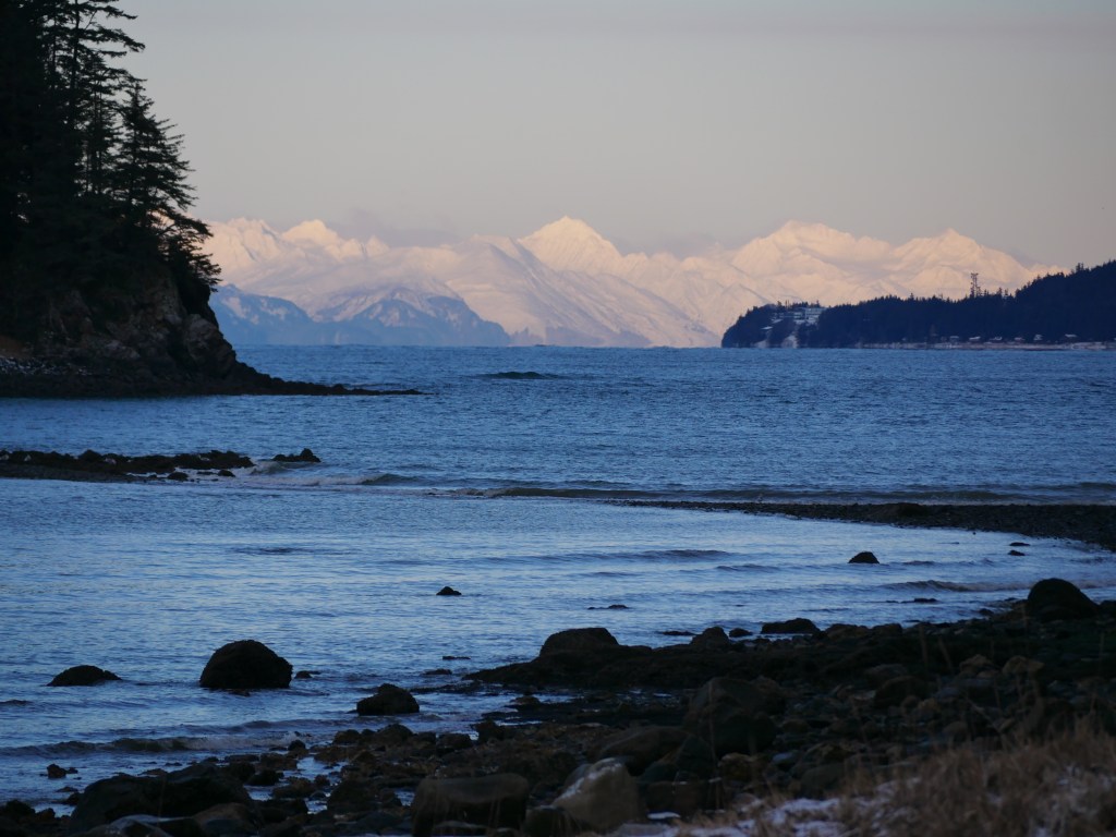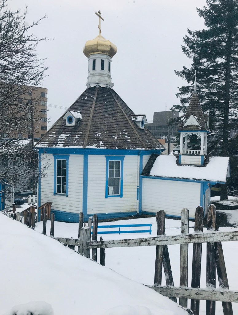 We must be close to the end of winter. The snow has no power to survive on the bare neighborhood streets. I let her chose the route and she drags me down the steepest portion of Gold Street and into the bar district of Juneau. I am feeling cold and a little bored with the thick snow fall.