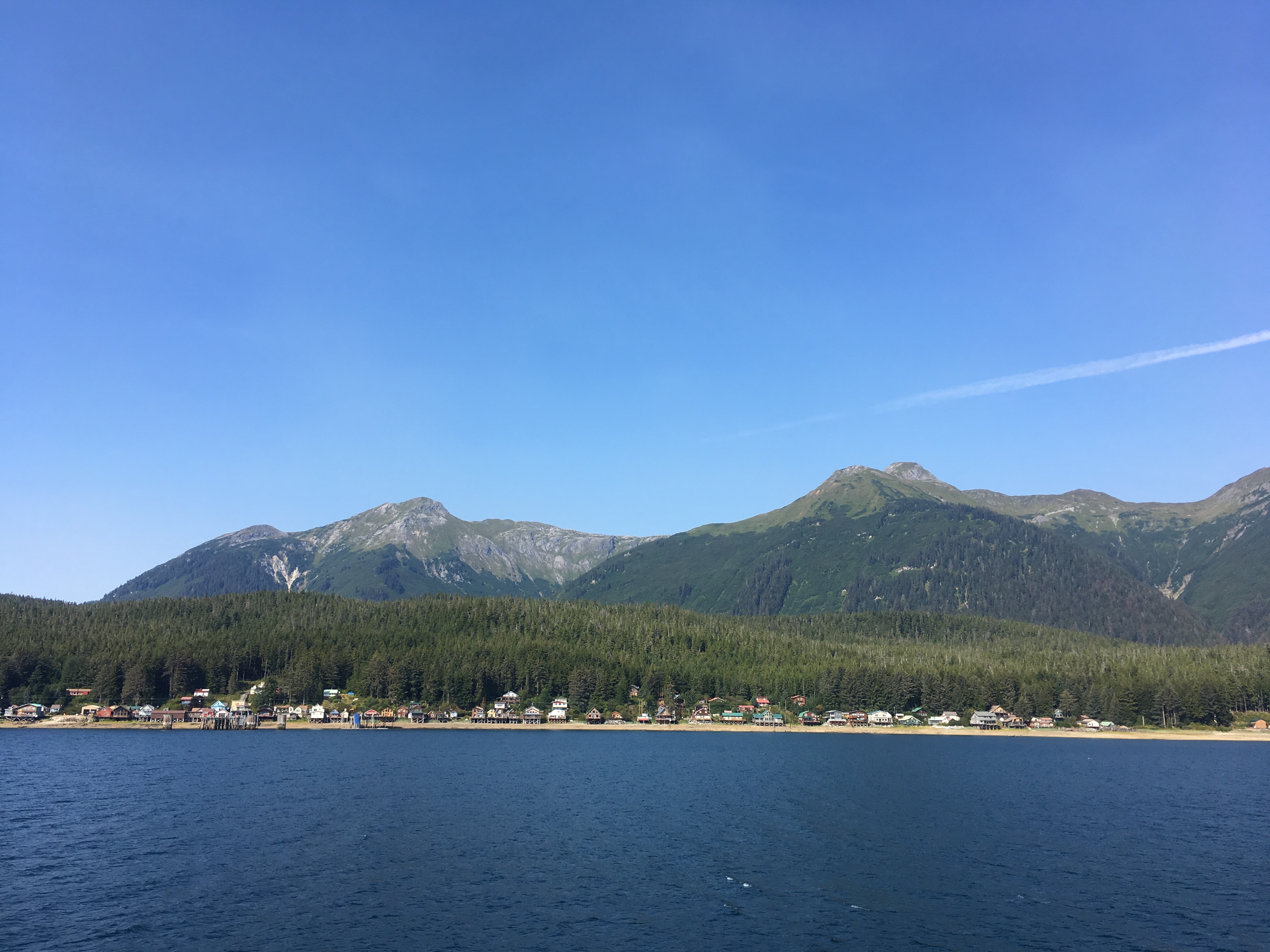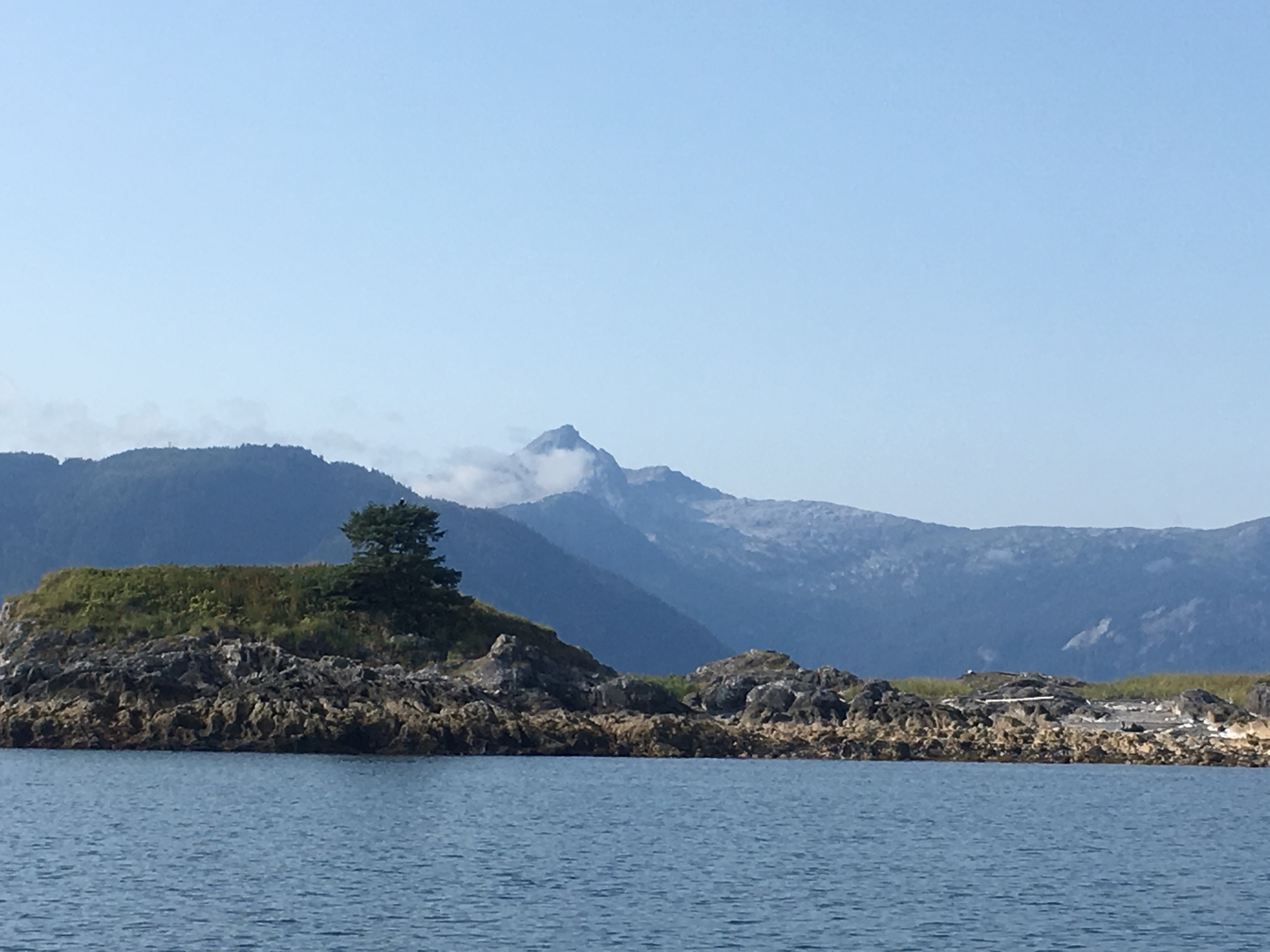 This morning Aki watched me board the MV LeConte for Tenakee Hot Springs. I thought about taking her but she would have howled during the entire voyage. It was hot and sunny as so many of our mornings have been this summer. Many of the other passengers were Tlingits returning home to Angoon. This was the first ferry to reach their village since the ferry strike ended. Many of the villagers were loaded down with things purchased in Juneau. Two large panel trucks full of inventory for the village store were parked on the LeConte’s car deck.