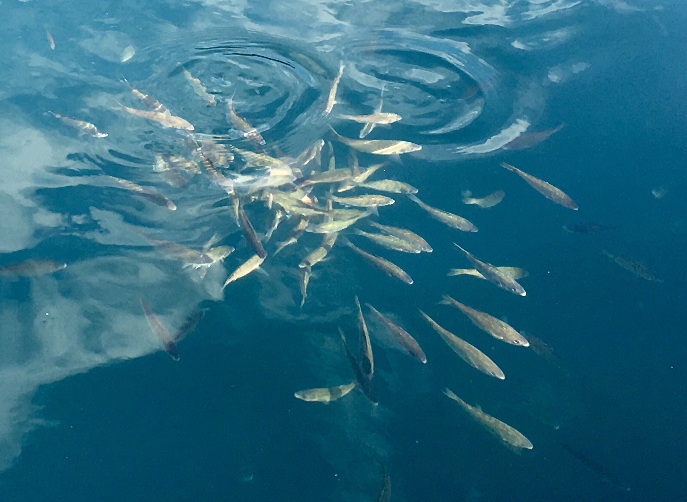 A friend and I are enjoying another morning cruising Tenakee Inlet. Rich, almost Mediterranean light ramps up the beauty level of simple things. A spit covered with living and dead spruce trees looks like the work of a Tuscan master. Silver salmon in transit from the Pacific Ocean to their spawning streams swim though schools of herring, making the smaller fish leap into the air. Gulls swim over the herring schools and try to pluck the flying fish from the air.