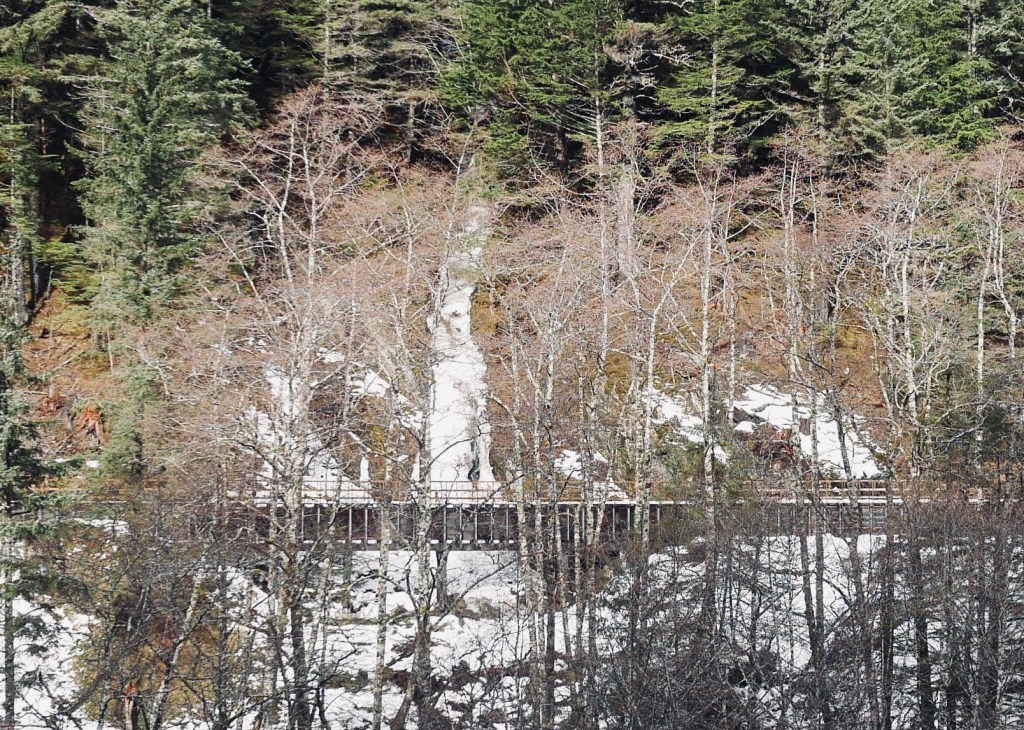 The little dog drags her paws when we leave the house. I want her to accompany me on a walk into the mountains which are now at risk of avalanche danger. Aki rejects the plan, preferring instead to drag me onto a snow-covered sidewalk. Once on it, the little pooch moves as slowly as a child just learning to walk. Two poops and several pees later she throws on the breaks. She won’t move until we head back to the house. I drop her off and walk poodle-less along Gold Creek.