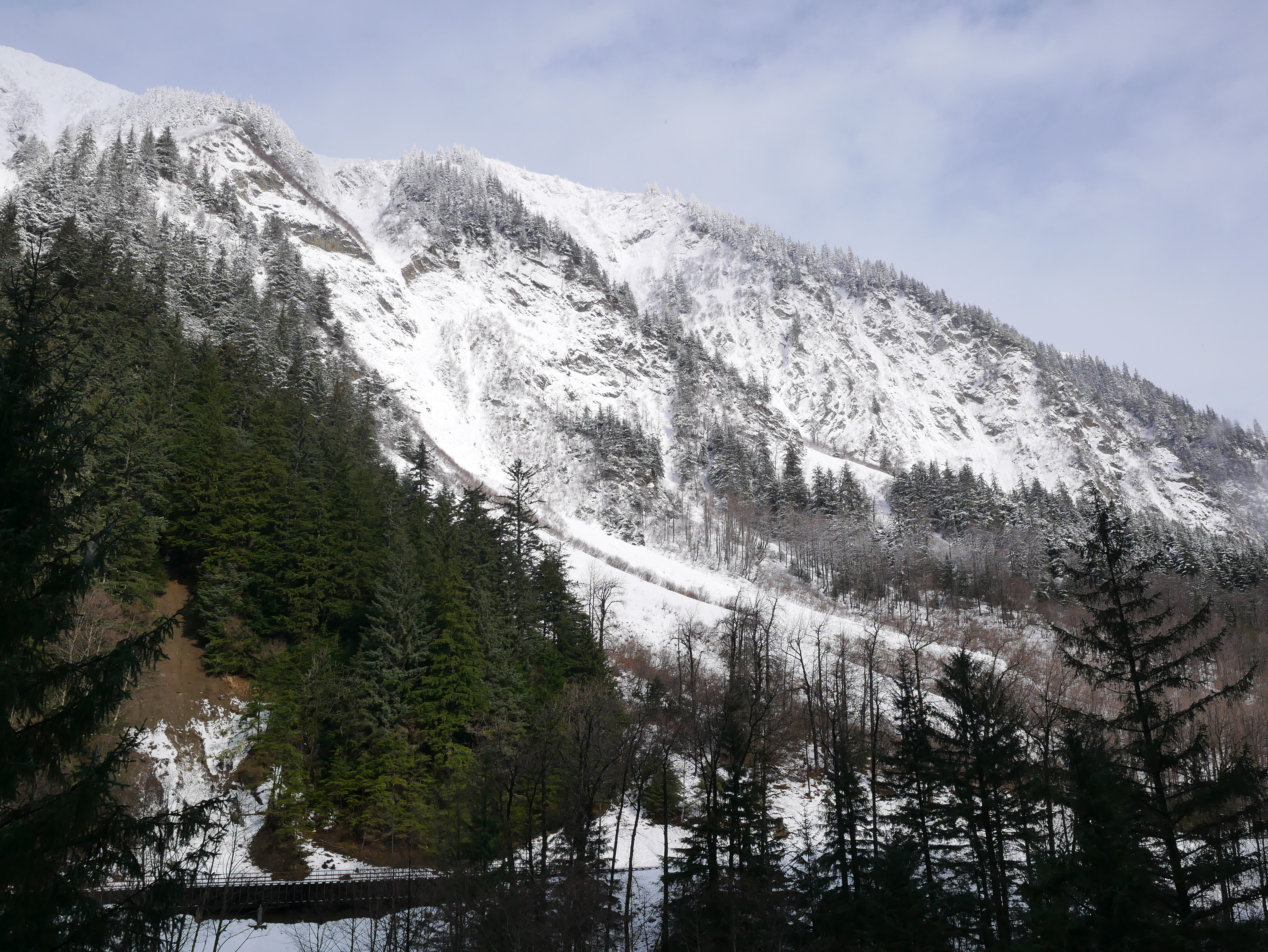 The little dog drags her paws when we leave the house. I want her to accompany me on a walk into the mountains which are now at risk of avalanche danger. Aki rejects the plan, preferring instead to drag me onto a snow-covered sidewalk. Once on it, the little pooch moves as slowly as a child just learning to walk. Two poops and several pees later she throws on the breaks. She won’t move until we head back to the house. I drop her off and walk poodle-less along Gold Creek.